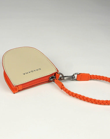 Design: Womens Beige&Black Leather Coin Zip Purse with Leather Chain Leather Zip Wristlet Purse for Ladies