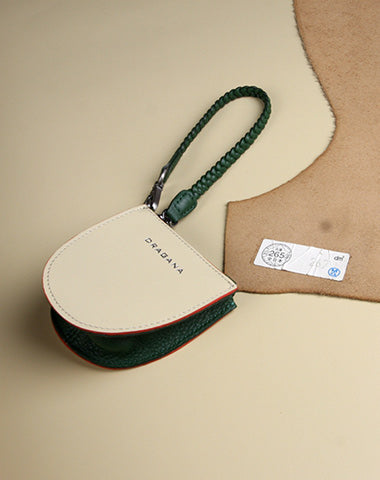 Style: Womens Beige&Green Leather Coin Zip Purse with Leather Chain Leather Zip Wristlet Purse for Ladies