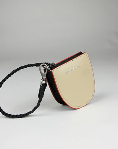 Design: Womens Beige&Green Leather Coin Zip Purse with Leather Chain Leather Zip Wristlet Purse for Ladies