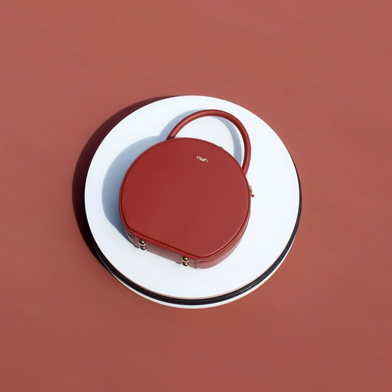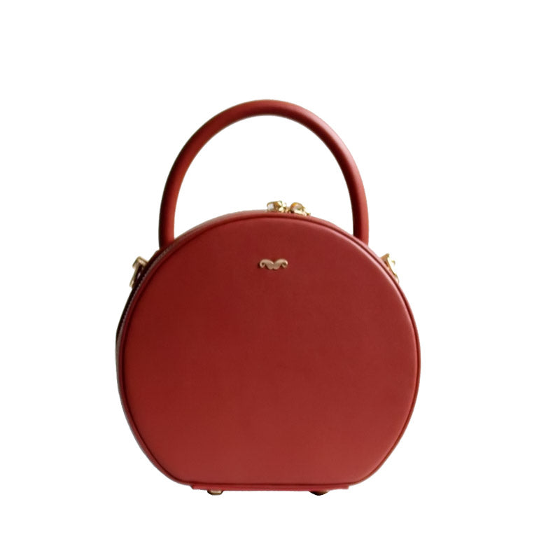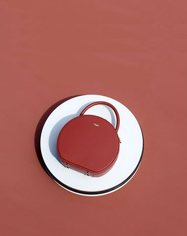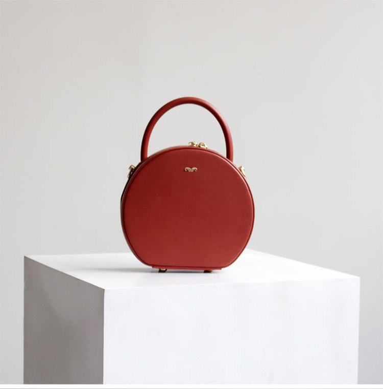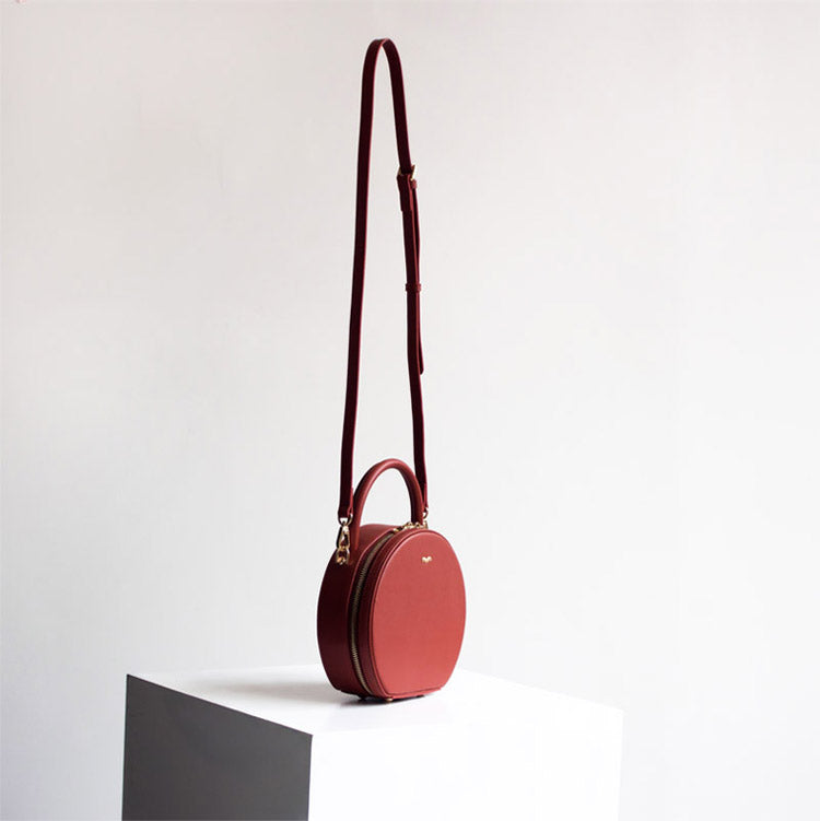 Design: Womens Red Leather Round Handbag Crossbody Bag Round Small Shoulder Bag for Women