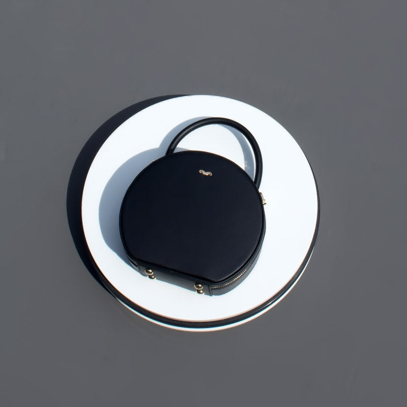 Womens Black Leather Round Handbag Crossbody Bag Round Small Shoulder Bag for Women