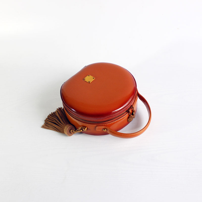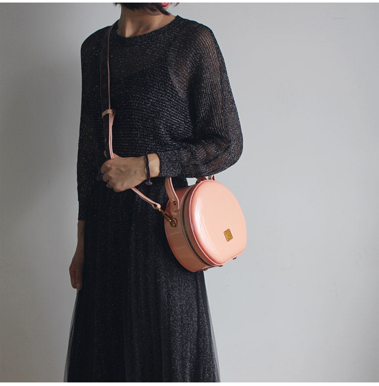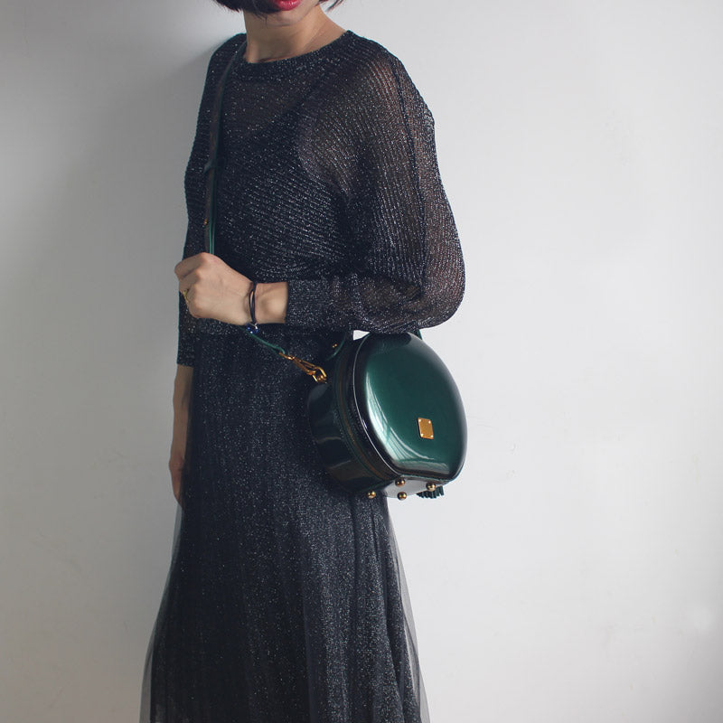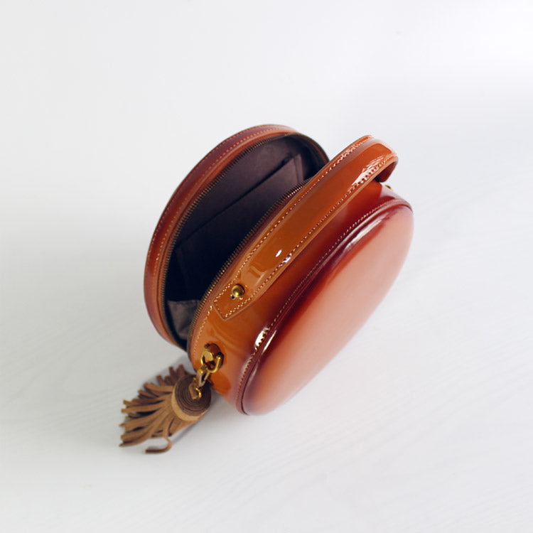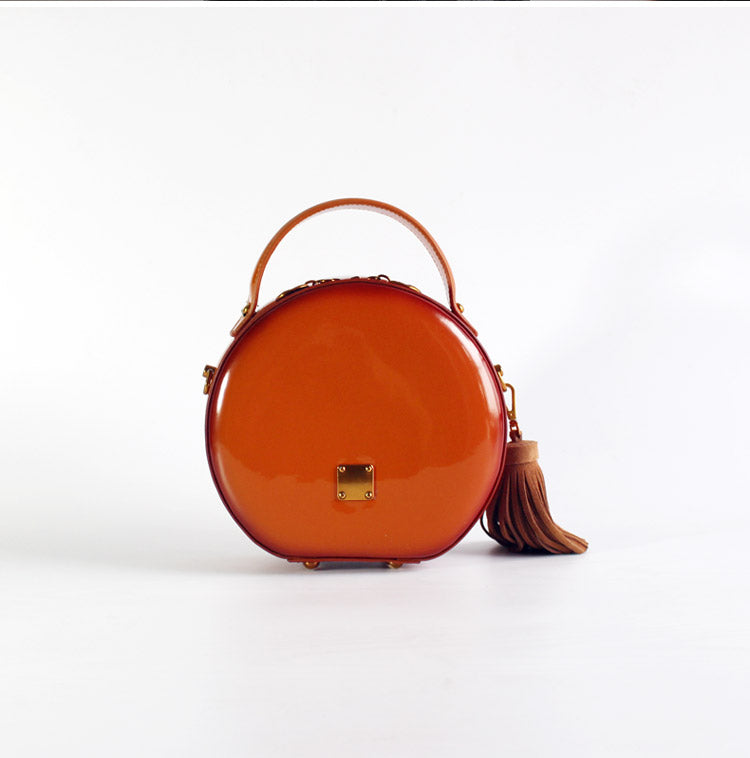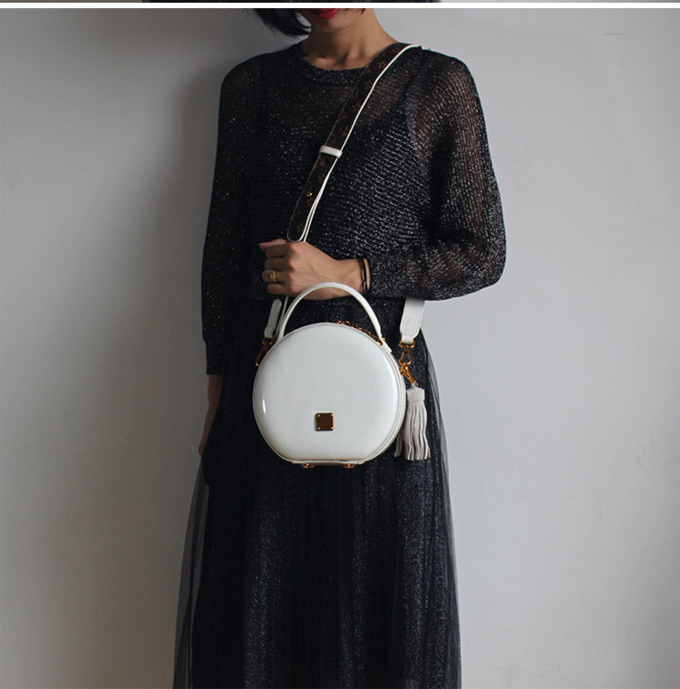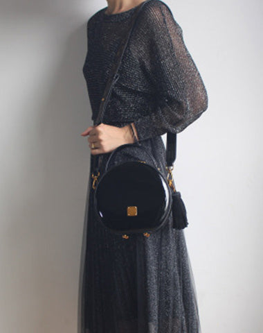 Design: Womens Black Leather Round Handbag Crossbody Purse With Tassels Black Round Shoulder Bags for Women