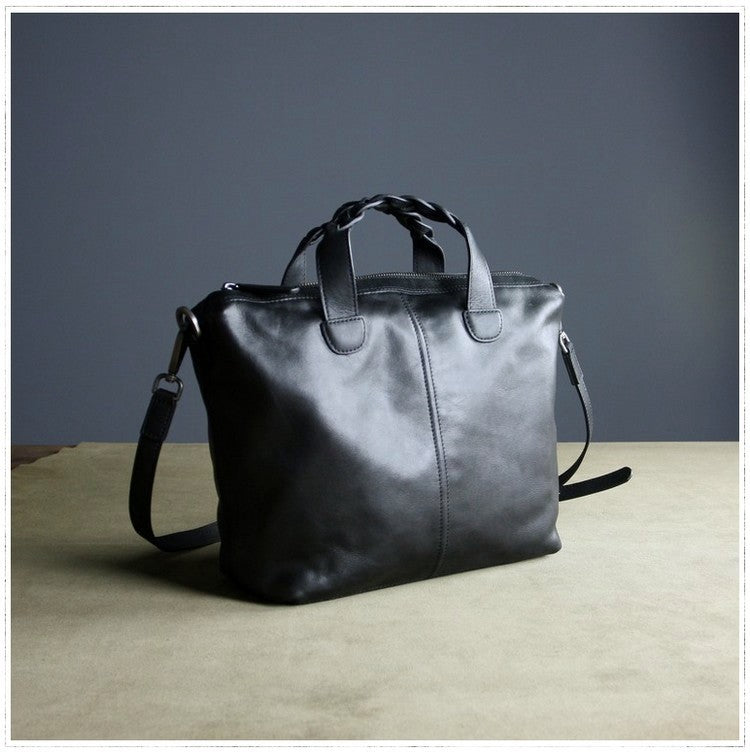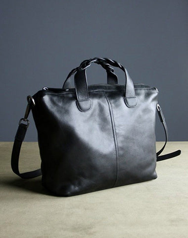 Womens Black Leather Work Handbag Purse Unique Leather Work Shoulder Purse for Ladies