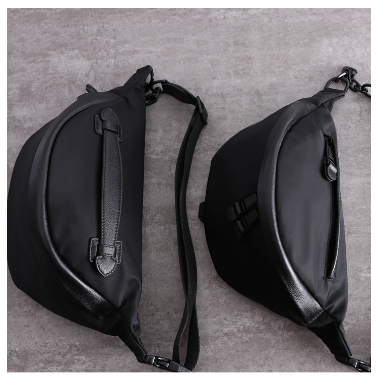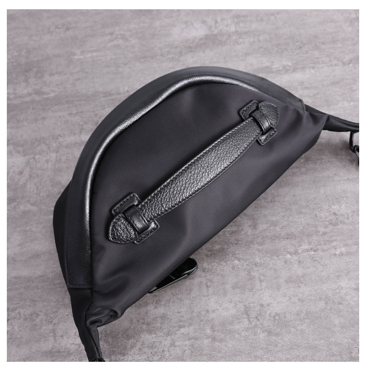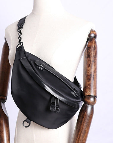 Womens Black Nylon Leather Fanny Pack Nylon Chest Bag Womens Hip Bag Waist Bag For Women