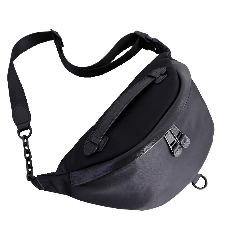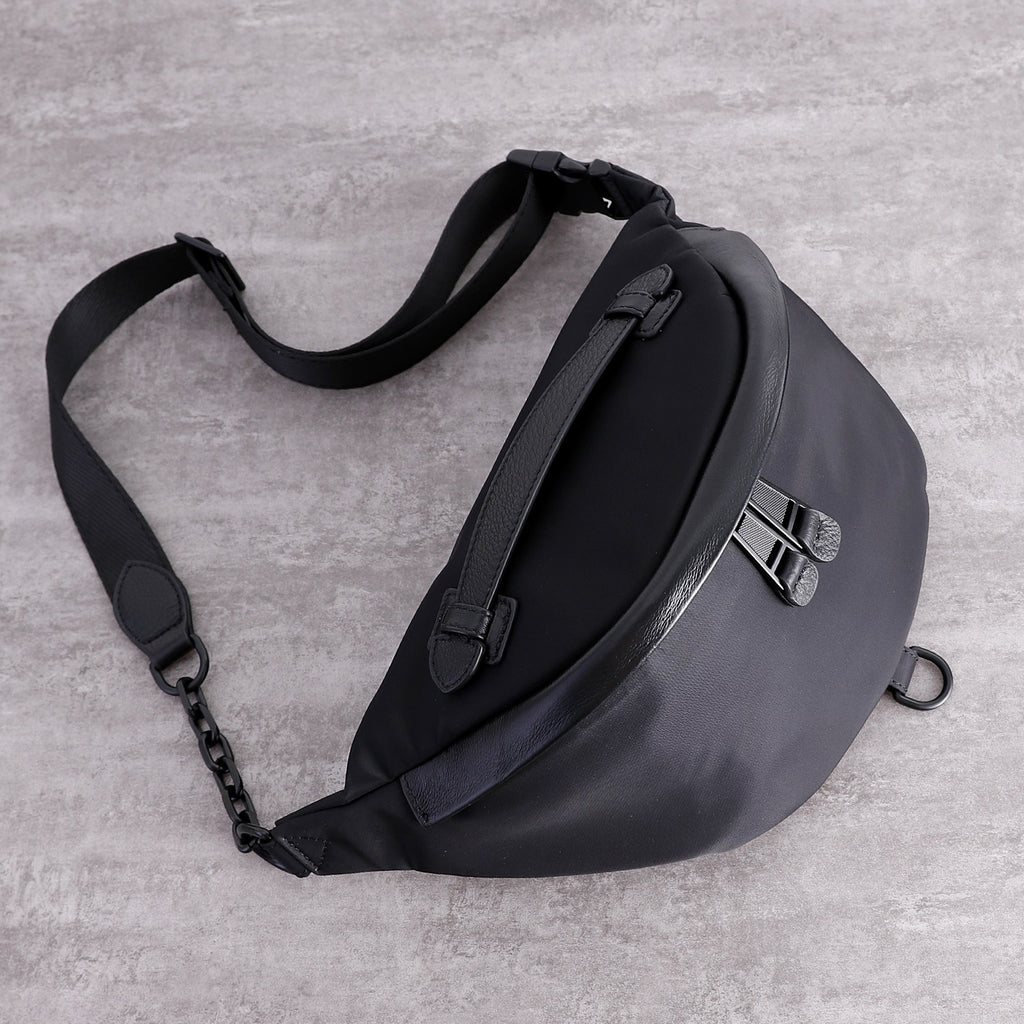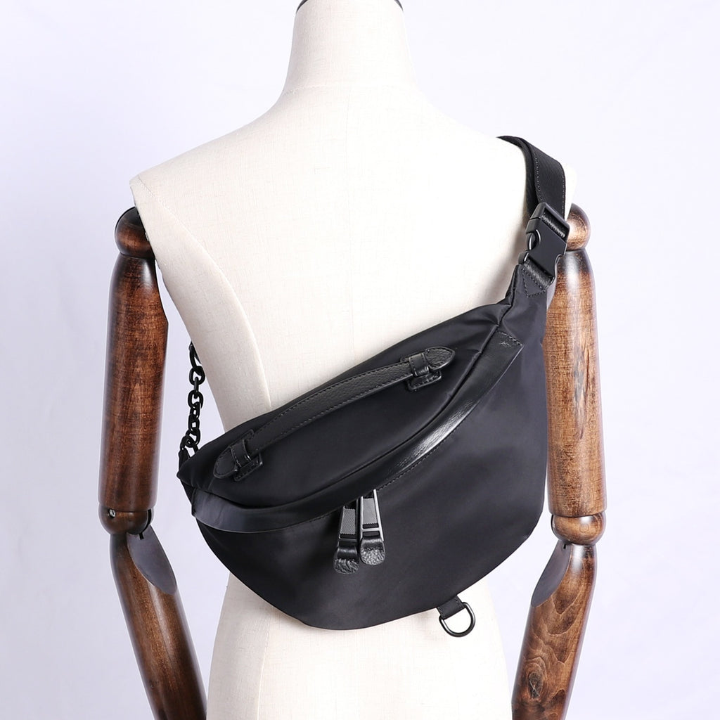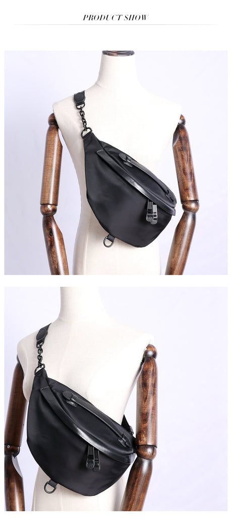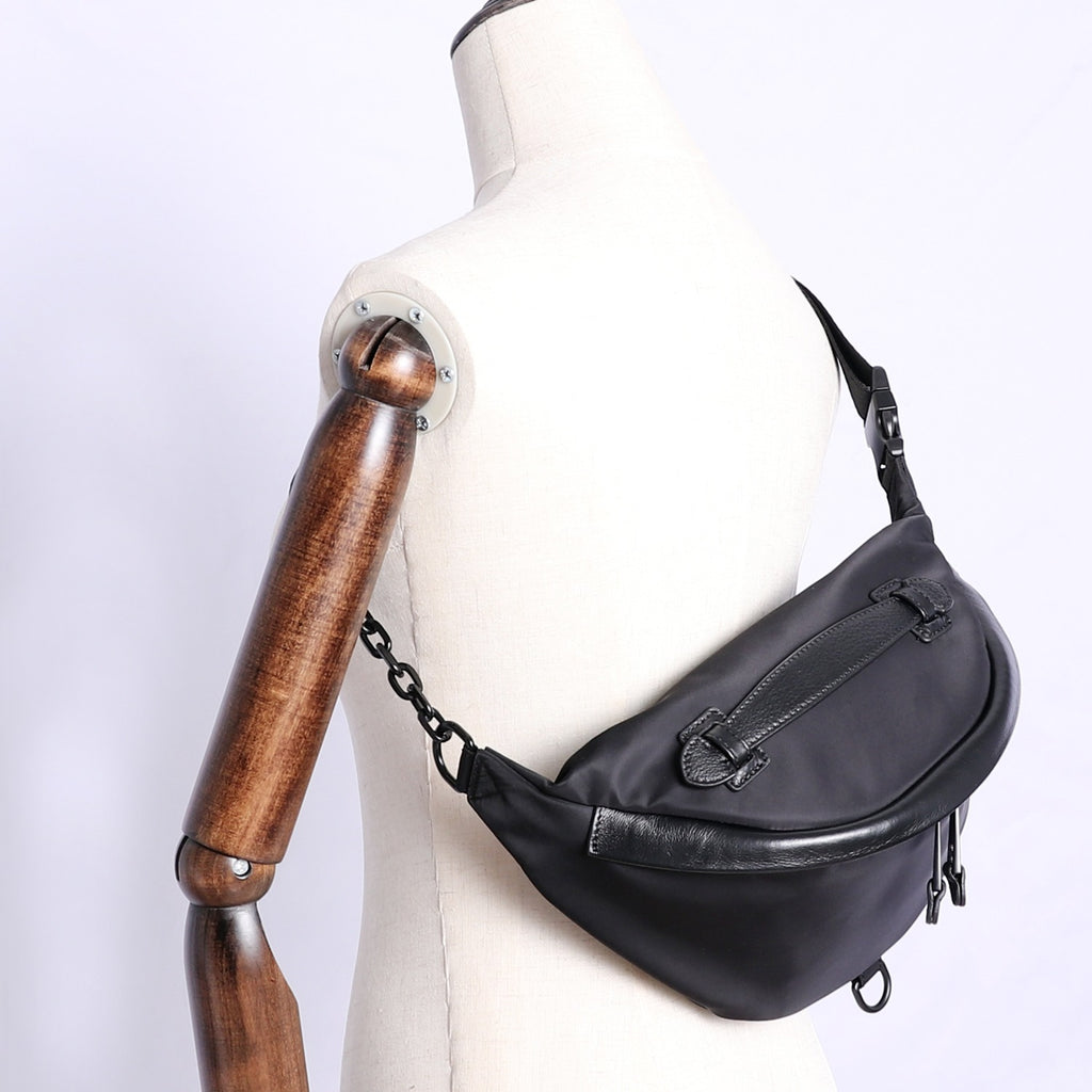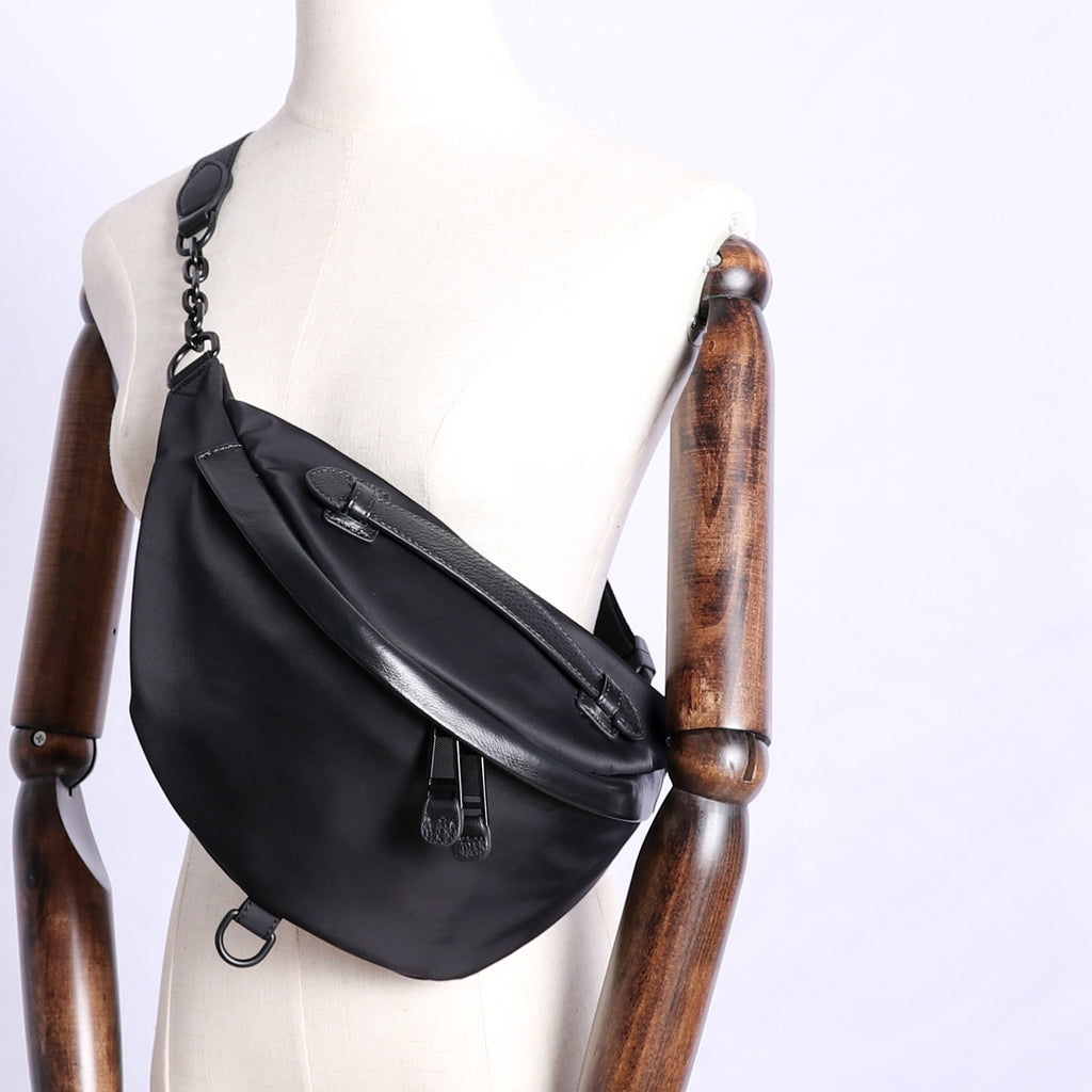 Design: Womens Black Nylon Leather Fanny Pack Nylon Chest Bag Womens Hip Bag Waist Bag For Women