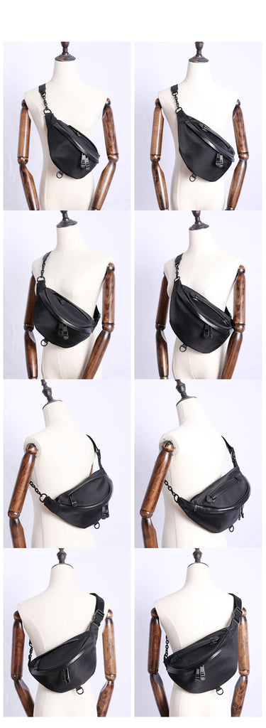 Style: Womens Black Nylon Leather Fanny Pack Nylon Chest Bag Womens Hip Bag Waist Bag For Women