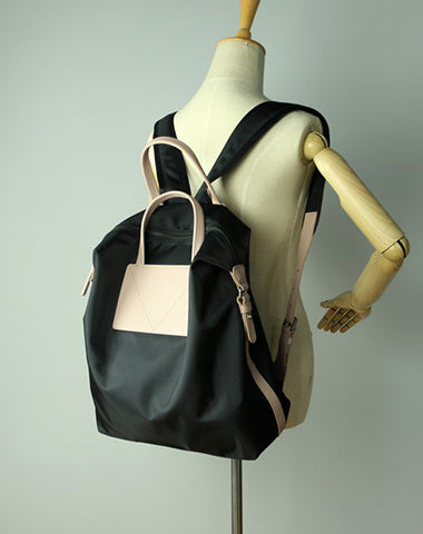 Design: Womens Black&Pink Nylon Backpack Purse Best Satchel Backpack Nylon Leather School Rucksack for Ladies