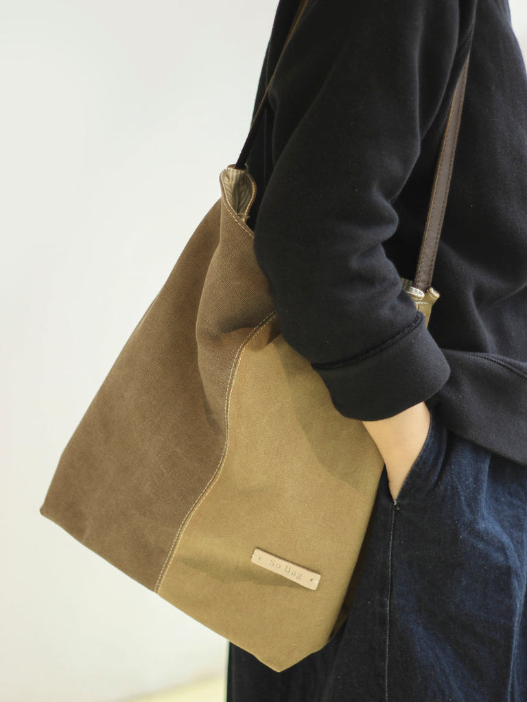 Made from durable canvas, this bag is built to withstand the demands of daily use. The khaki and army green splicing not only enhances its visual appeal but also ensures it complements a variety of outfits. The tote's sturdy shoulder straps provide comfort, whether carried on the shoulder or by hand.