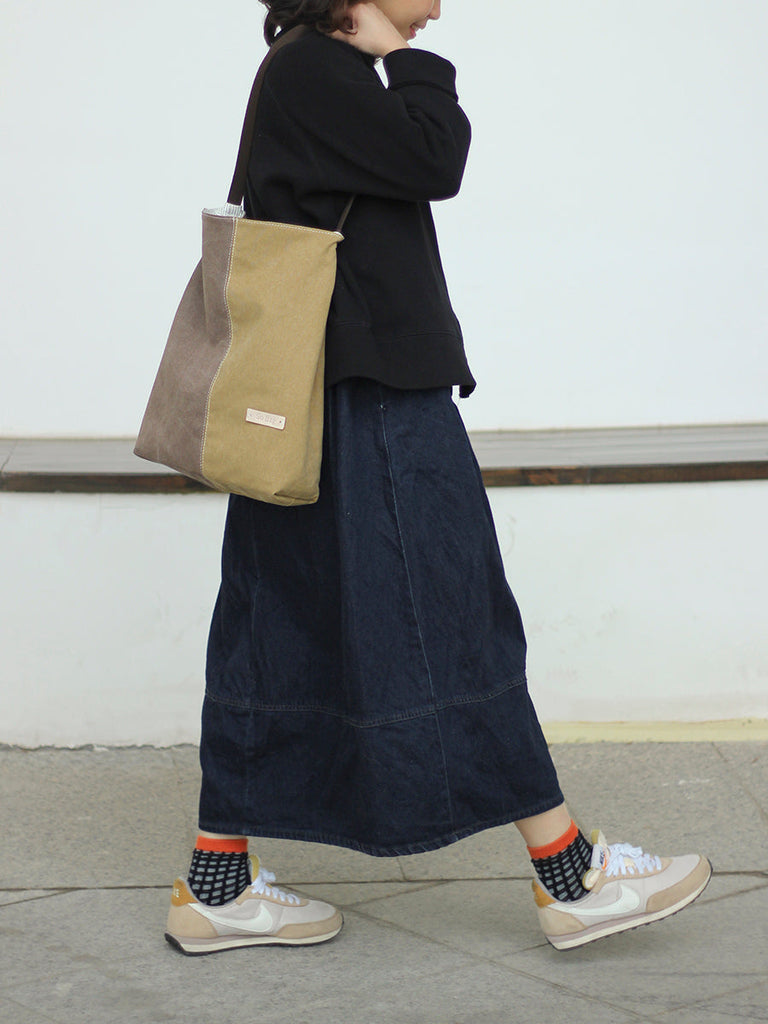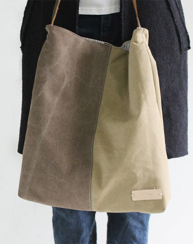In summary, the Khaki Canvas Splicing Tote Bag is a practical and fashionable accessory. Its unique design and spacious interior make it a must-have for anyone looking to combine style with everyday functionality.