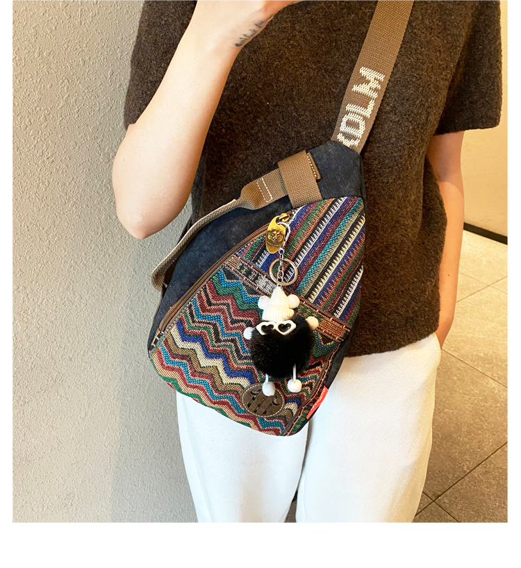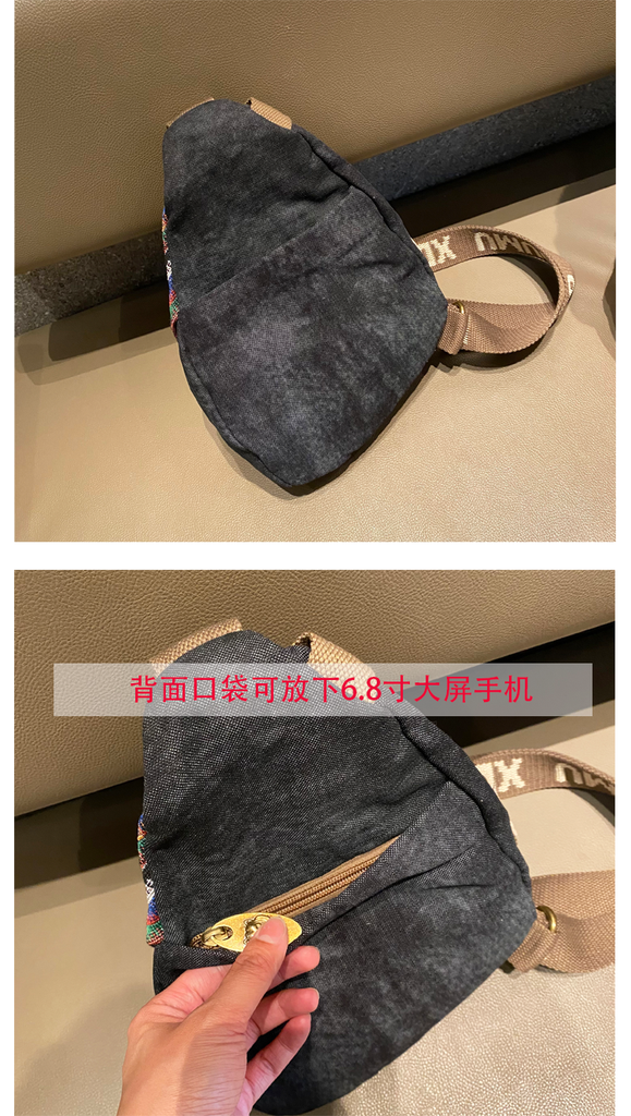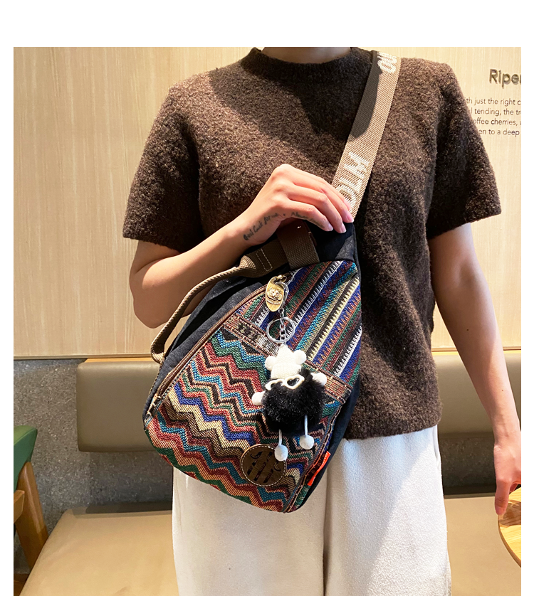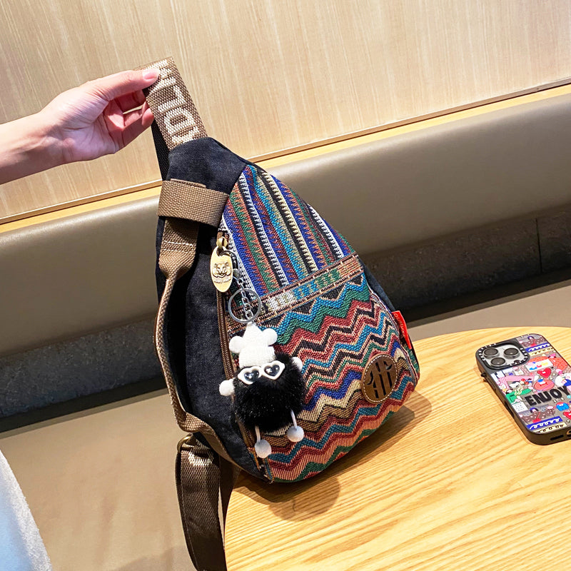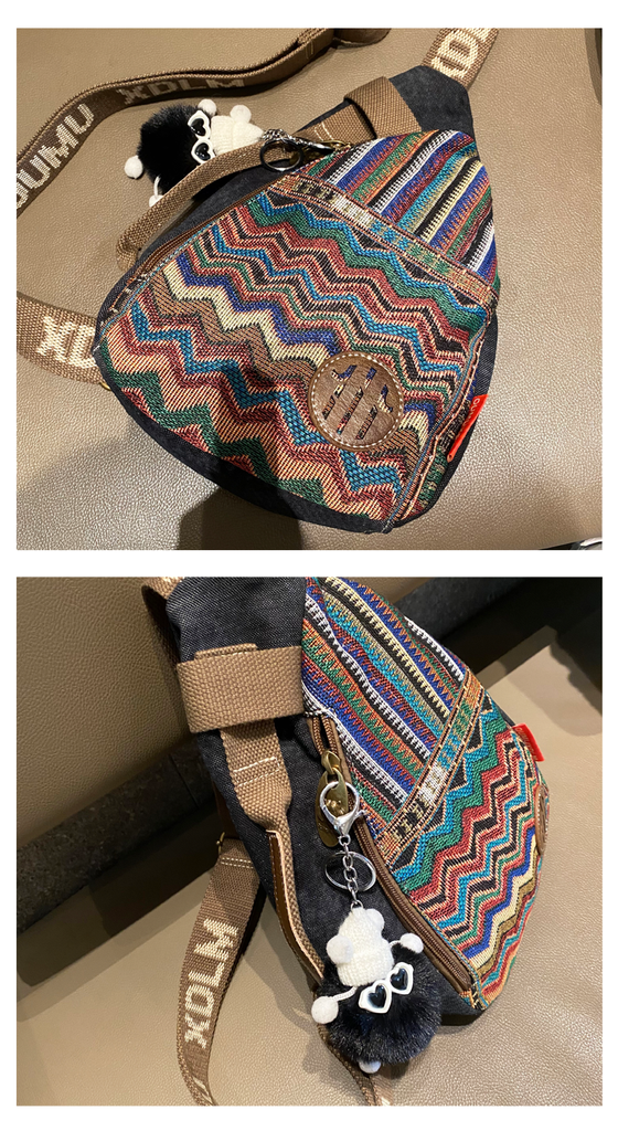 Design: Boho Sling Bag Canvas Crossbody Backpack Canvas Embroidery Sling Backpack