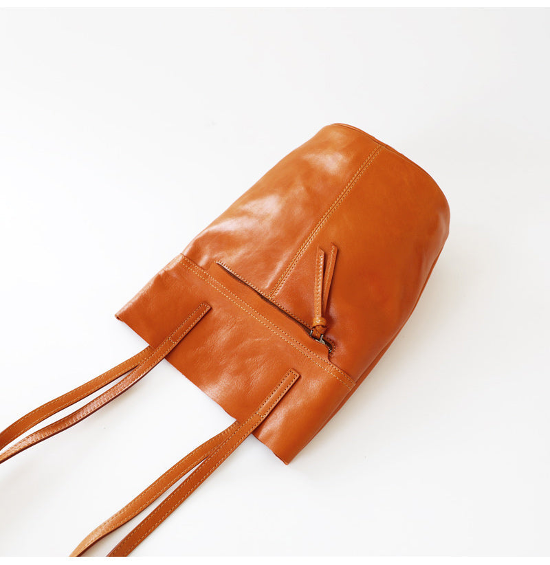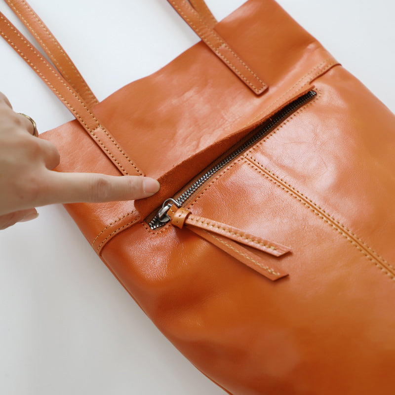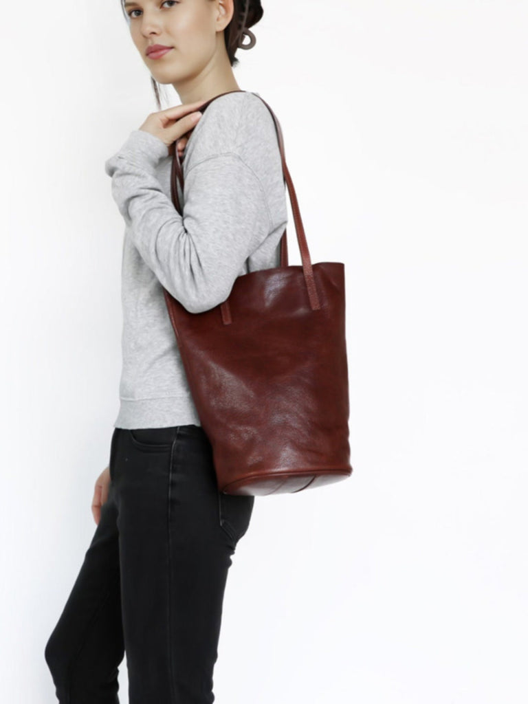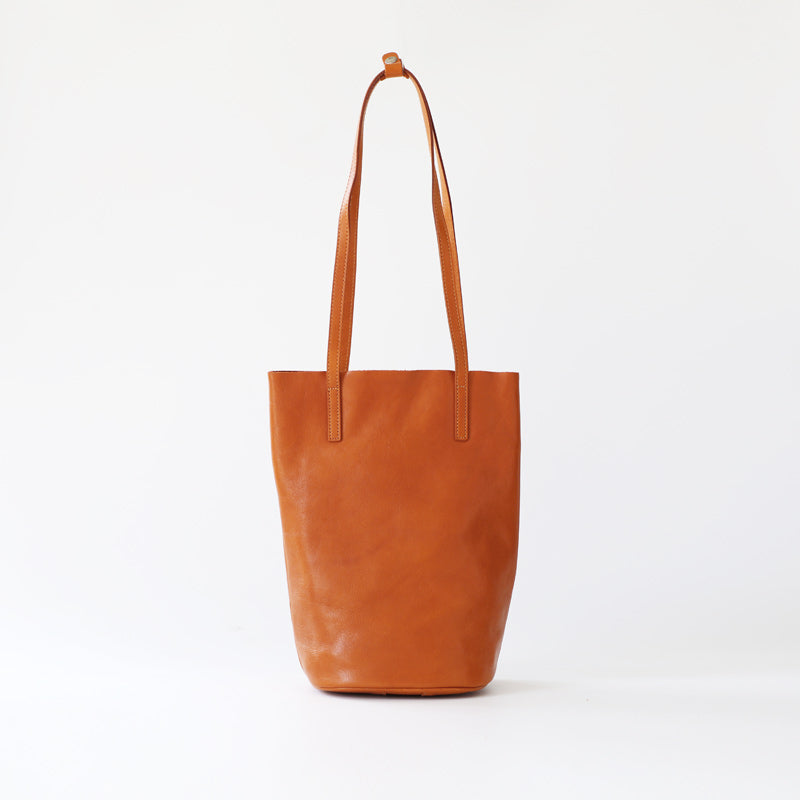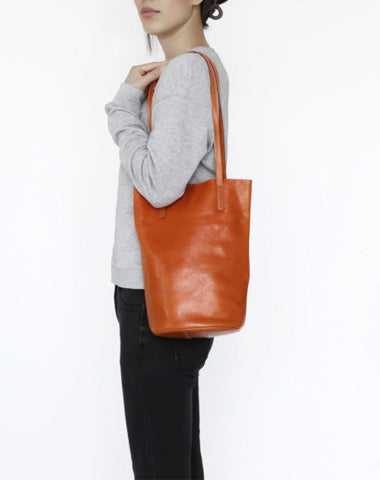 Design: Womens Leather Bucket Tote Purse Vertical Tote Shopper Shoulder Bag for Ladies