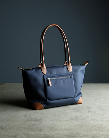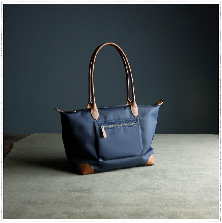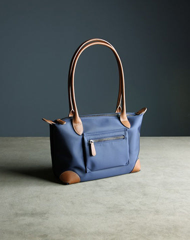 Design: Womens Dark Blue&Brown Nylon Shoulder Tote Small Dark Blue Nylon&Brown Handbag Purse for Ladies