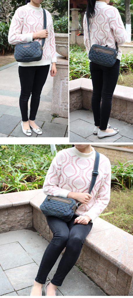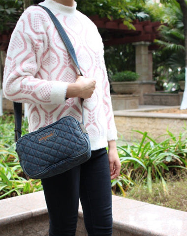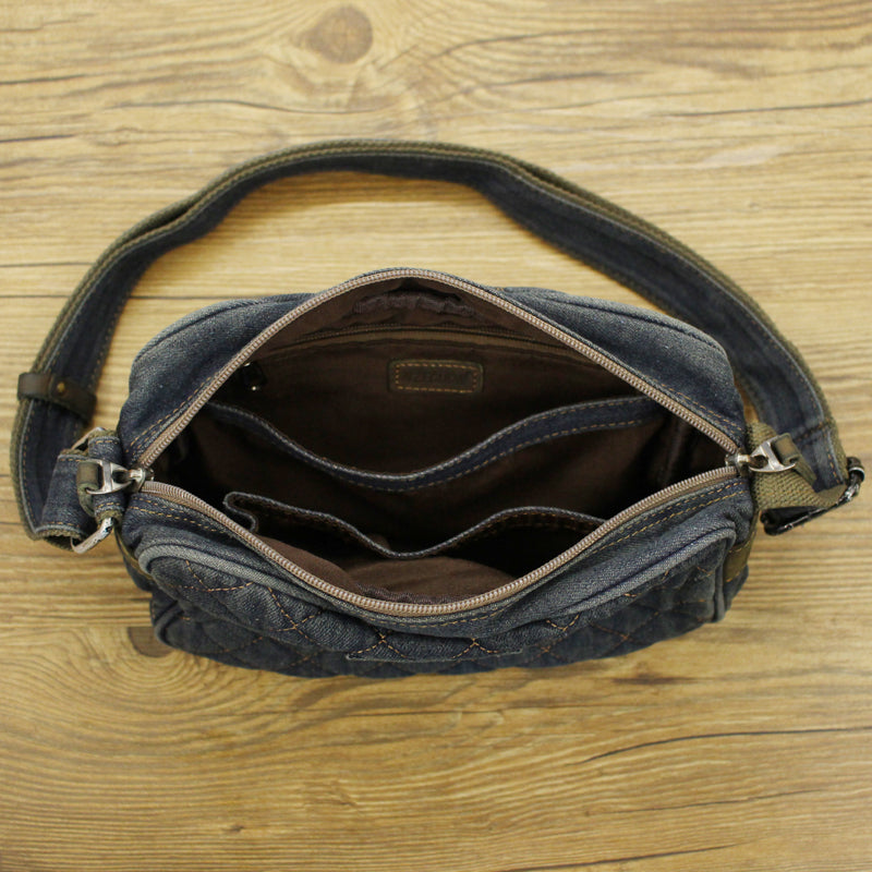 Style: Blue Denim Womens Small Quilted Shoulder Bags Denim Quilted Side Bag Quilted Crossbody Bag For Men