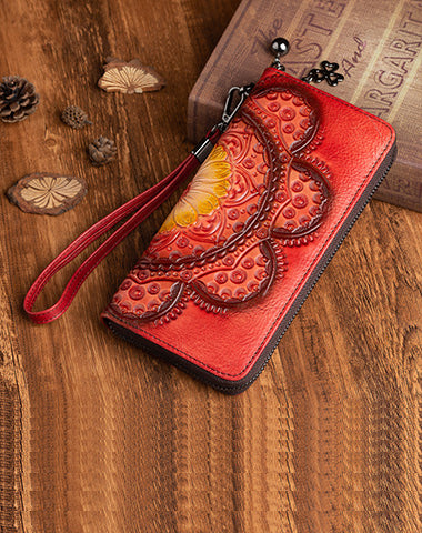 Womens Floral Leather Wristlet Wallet Flower Zip Around Wallets Floral Ladies Zipper Clutch Wallets for Women