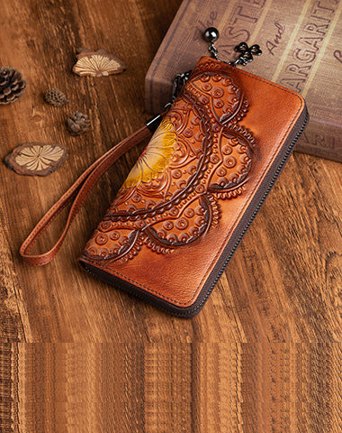 Design: Womens Floral Leather Wristlet Wallet Flower Zip Around Wallets Floral Ladies Zipper Clutch Wallets for Women