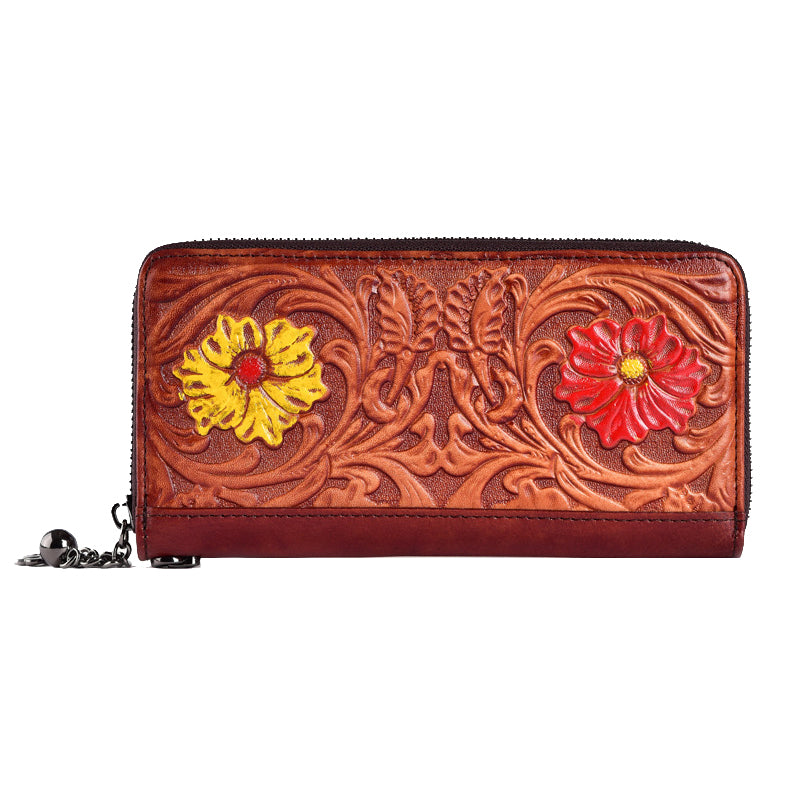 Style: Womens Flower Leather Wristlet Wallets Zip Around Wallet Floral Ladies Zipper Clutch Wallet for Women