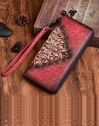 Design: Womens Flowers Leather Zip Around Wallet Wristlet Wallet Floral Ladies Zipper Clutch Wallet for Women