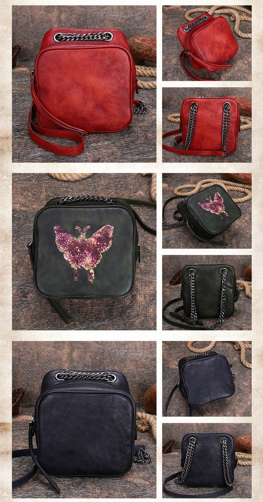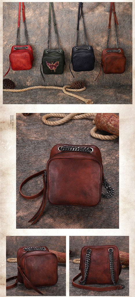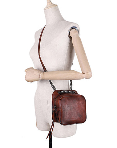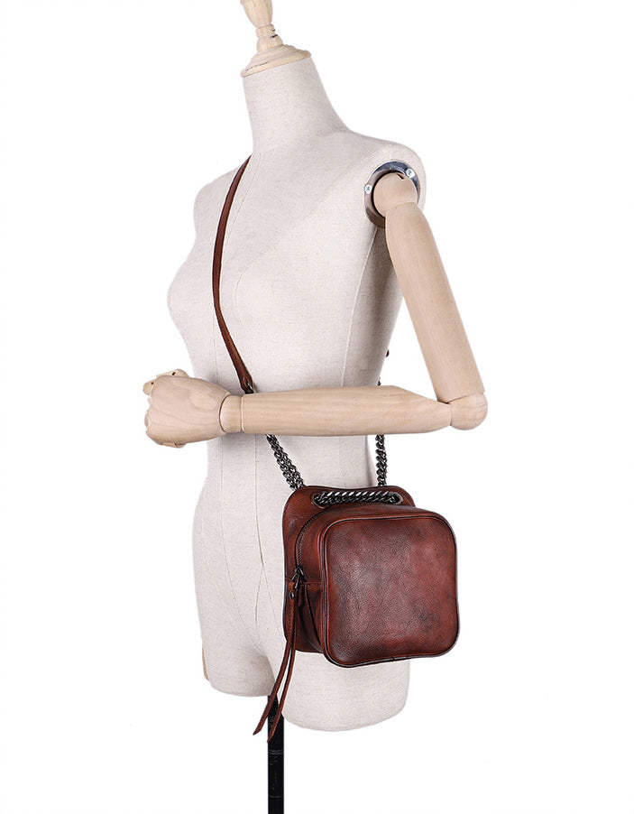Design: Womens Leather Cube Small Side Bag Mini Shoulder Bag Best Square Crossbody Purse for Ladies
