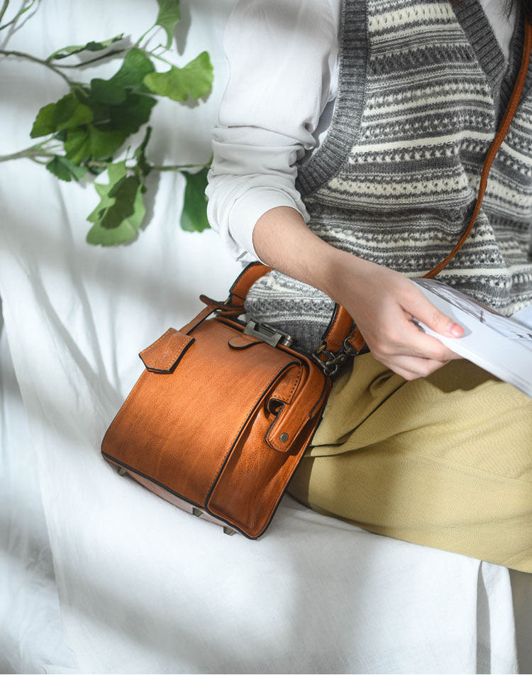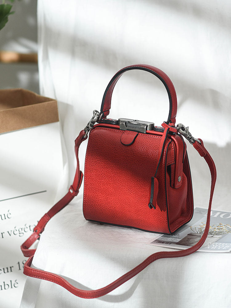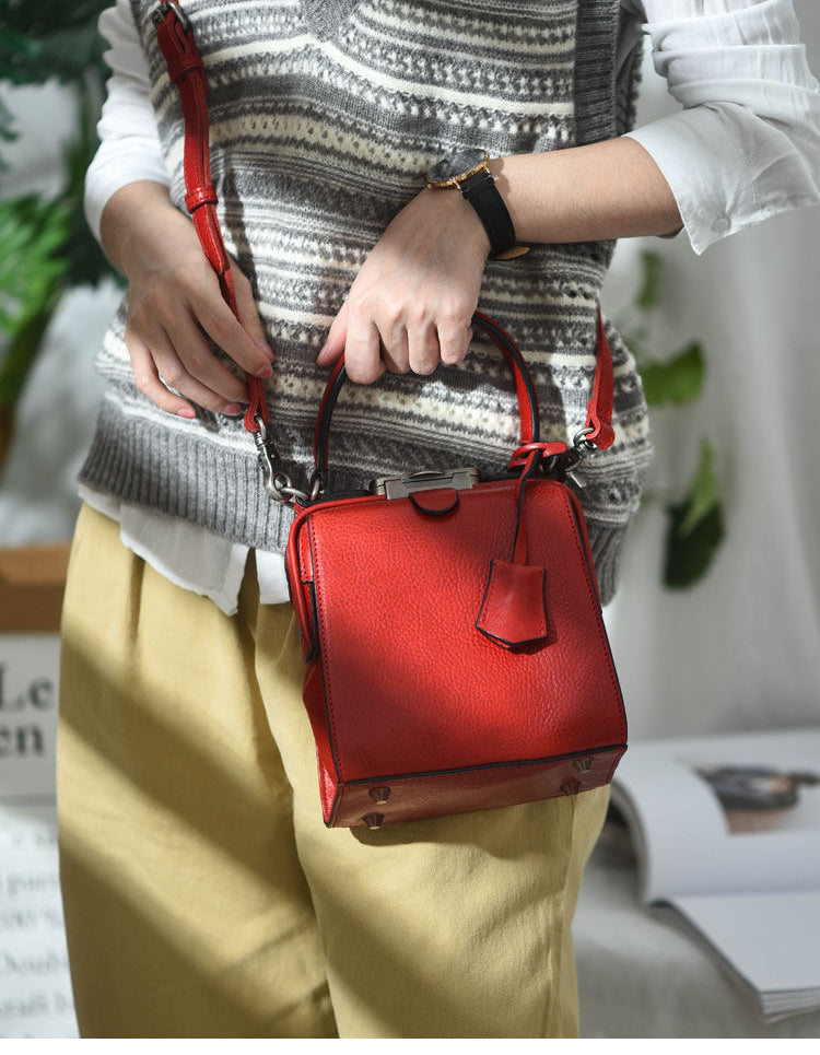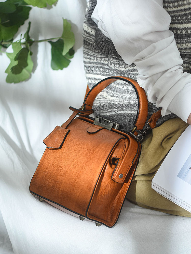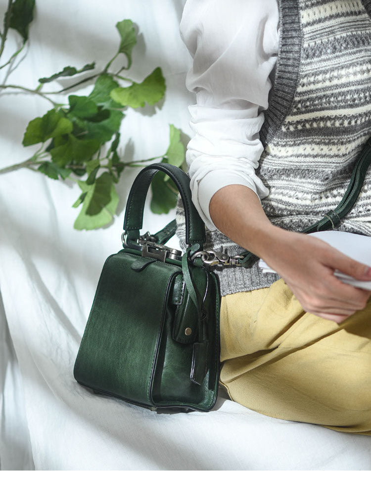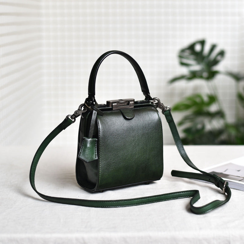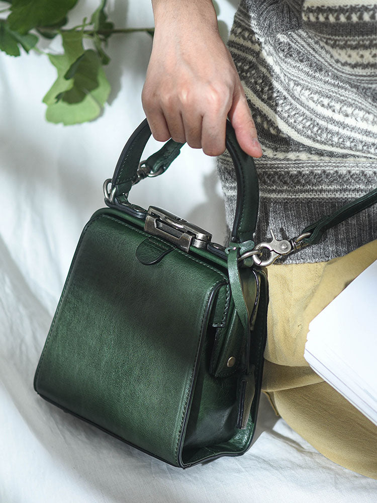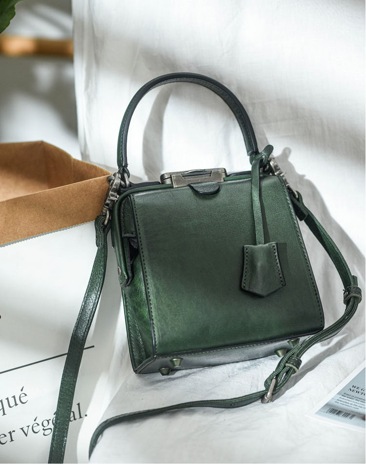 Style: Womens Green Leather Doctor Handbag Purses Square Doctor Crossbody Purse for Women