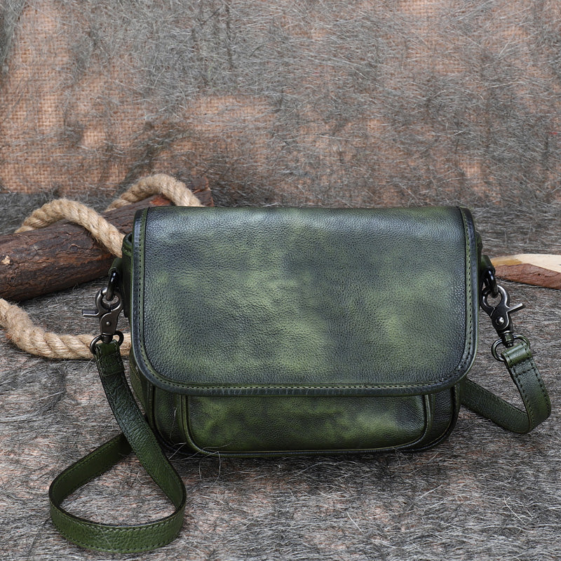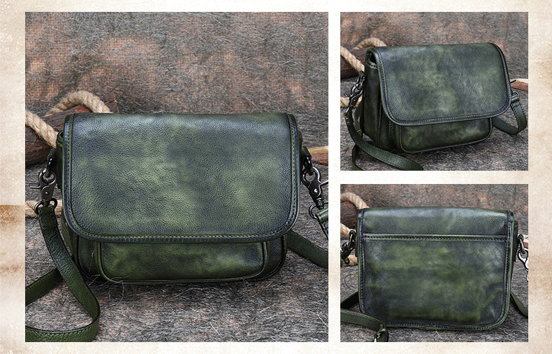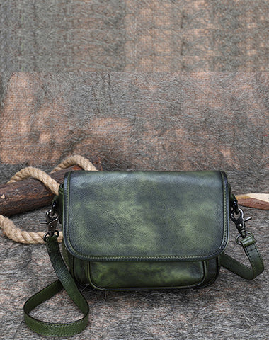 Womens Green Leather Flip Side Bag Best Shoulder Bag Small Crossbody Purse for Ladies