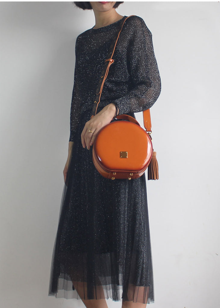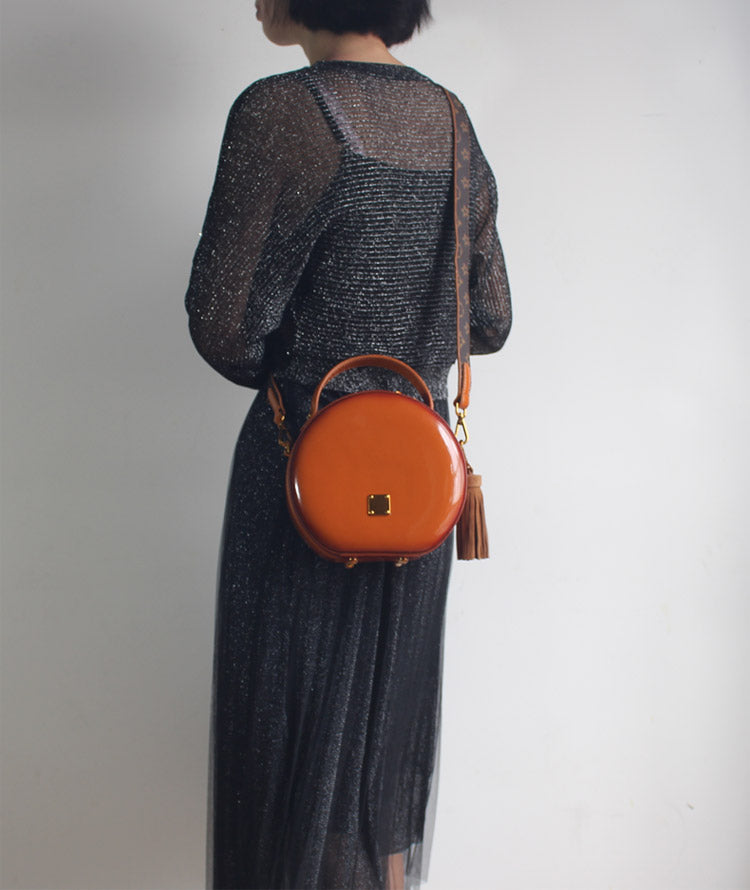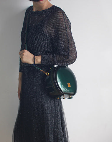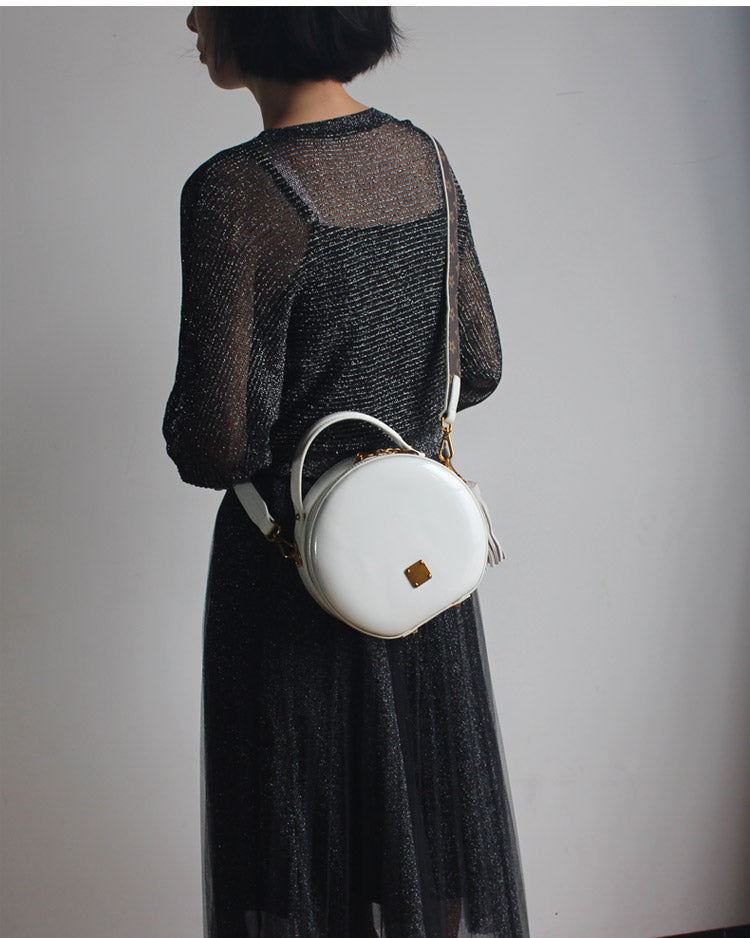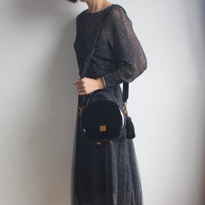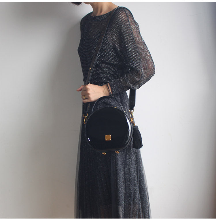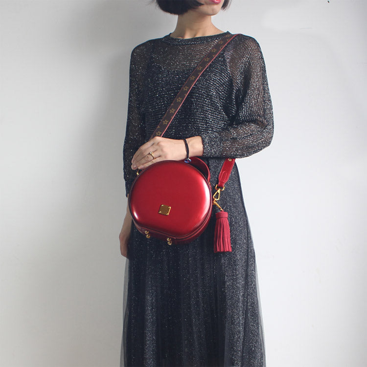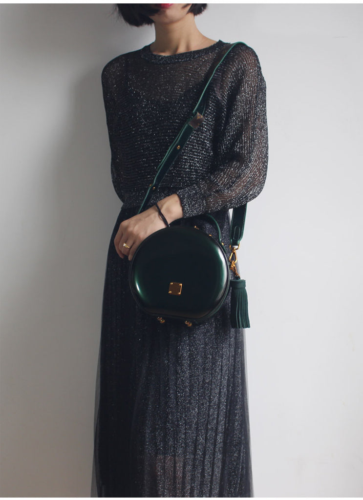 Design: Womens Green Leather Round Handbag Crossbody Purse With Tassels Green Round Shoulder Bags for Women