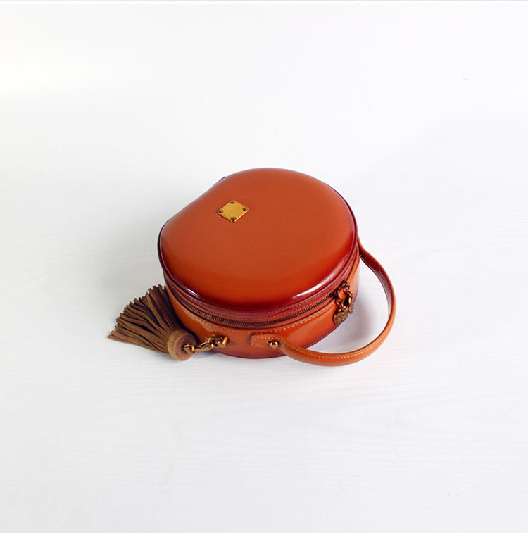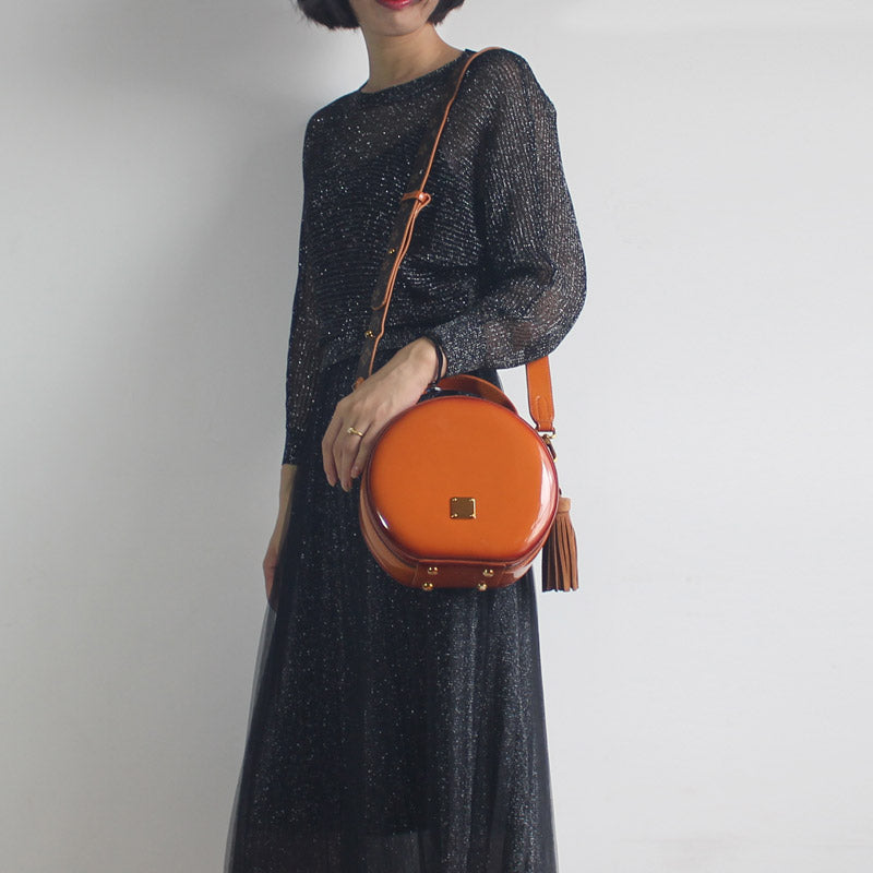 Womens Green Leather Round Handbag Crossbody Purse With Tassels Green Round Shoulder Bags for Women