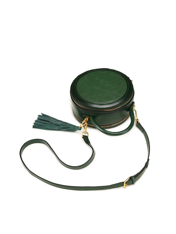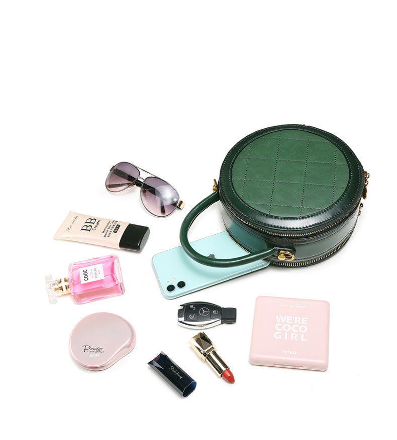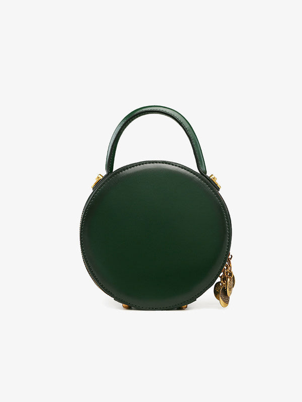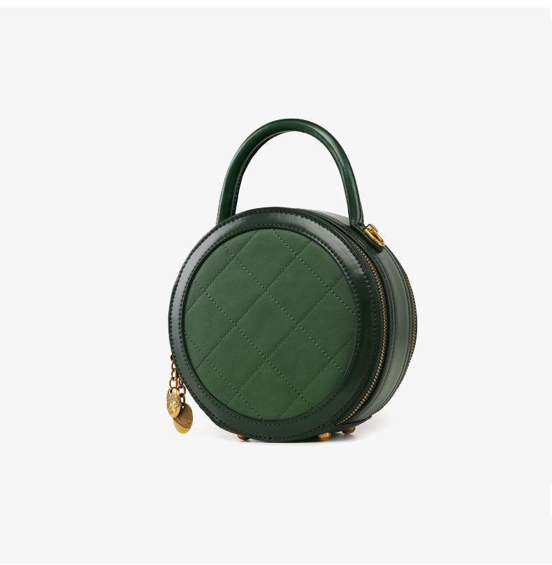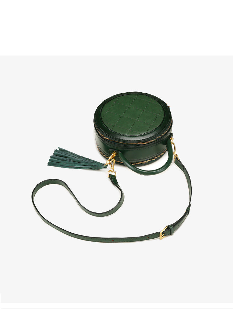 Design: Womens Green Leather Round Handbag Small Crossbody Purse Round Shoulder Bag for Women