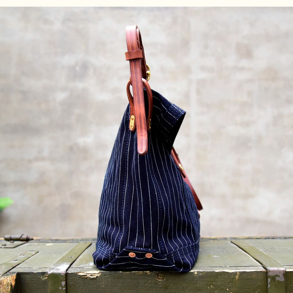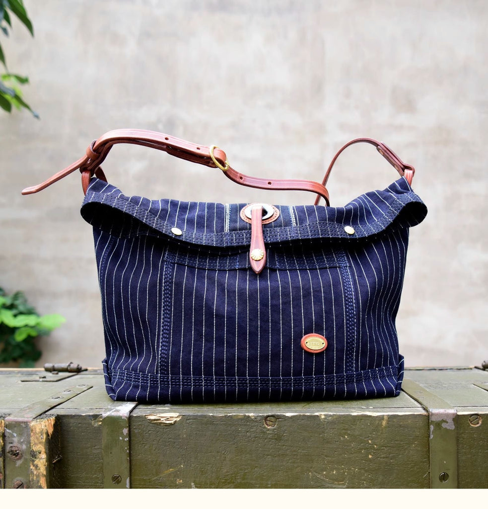 Design: Womens Jeans Shoulder Bag Blue Striped Denim Leather Crossbody Bag for Men Striped Messenger Bag