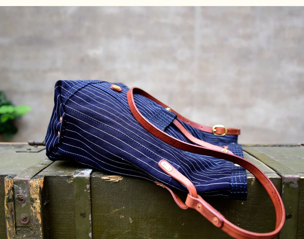Style: Womens Jeans Shoulder Bag Blue Striped Denim Leather Crossbody Bag for Men Striped Messenger Bag