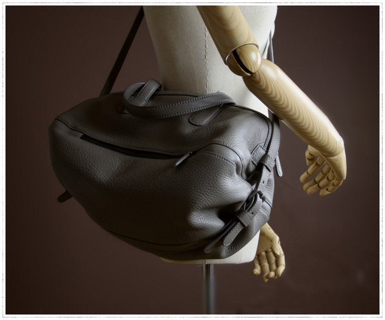 Design: Womens Leather Barrel Shoulder Purse Womens Gray Bucket Leather Handbag Shoulder Bag for Ladies