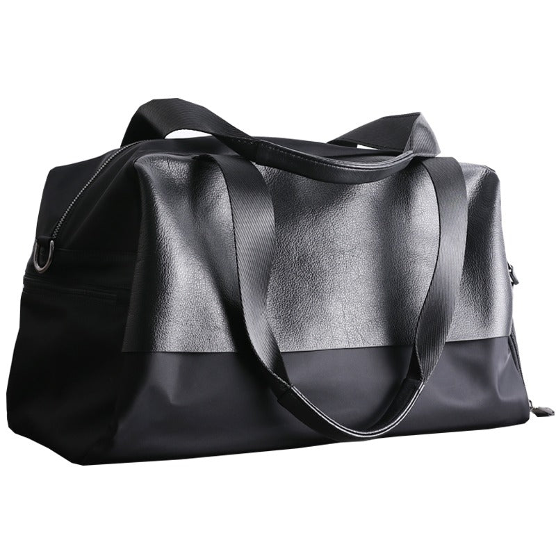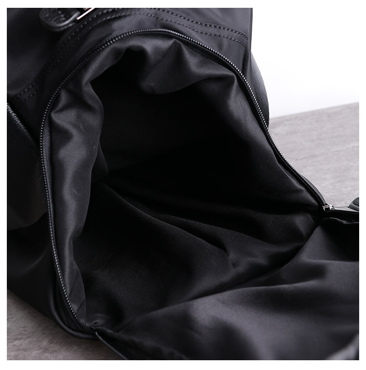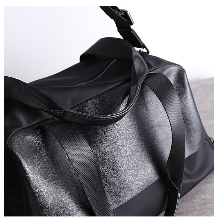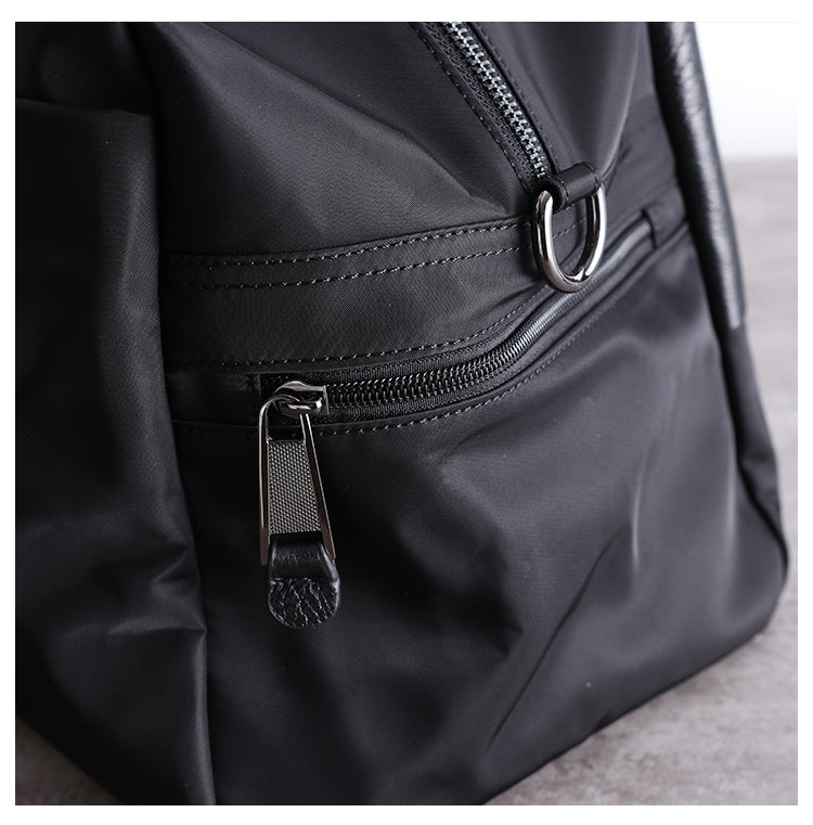 Style: Womens Leather Nylon Overnight Handbag Travel Bag Gym Bag Weekender Bag For Women