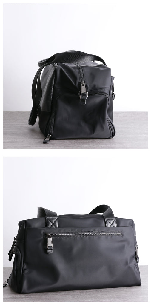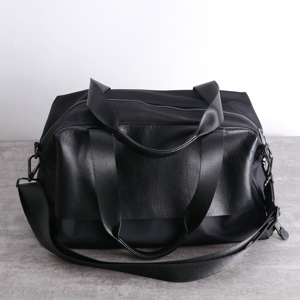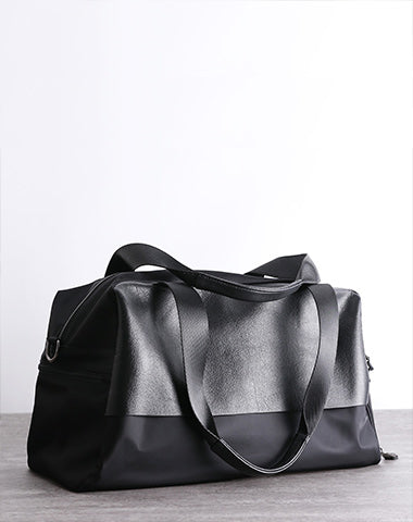 Design: Womens Leather Nylon Overnight Handbag Travel Bag Gym Bag Weekender Bag For Women