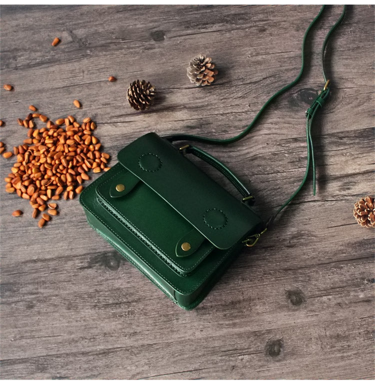Crafted with meticulous attention to detail, this Women's Leather Satchel Crossbody Bag epitomizes both elegance and functionality. Handmade to perfection, it exudes a timeless charm suitable for every occasion, whether it's for school, daily errands, or travel adventures. Available in three exquisite colors—tan, red-brown, and green—this bag adds a touch of sophistication to any ensemble.