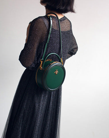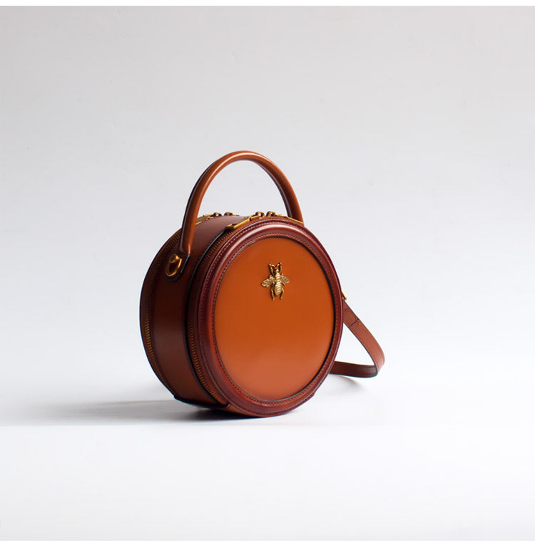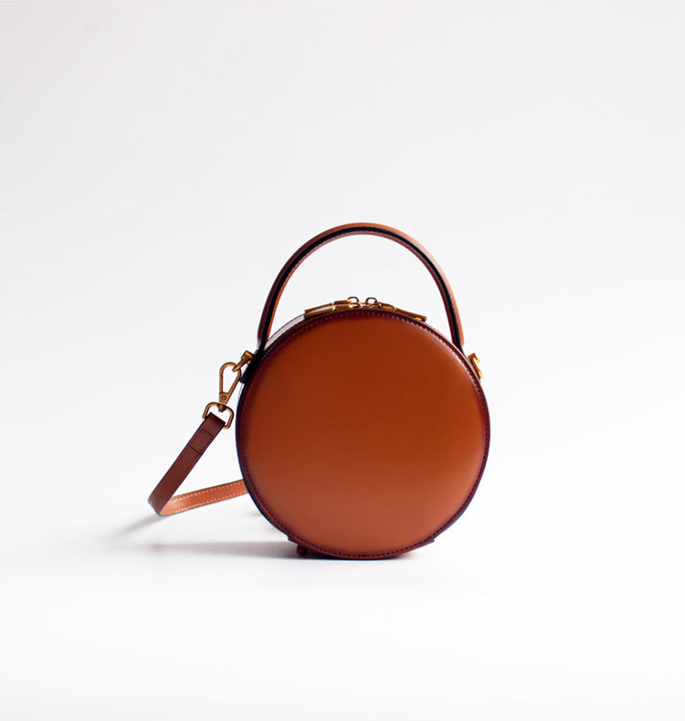Womens Leather Small Round Handbag Crossbody Purse Round Shoulder Bag for Women