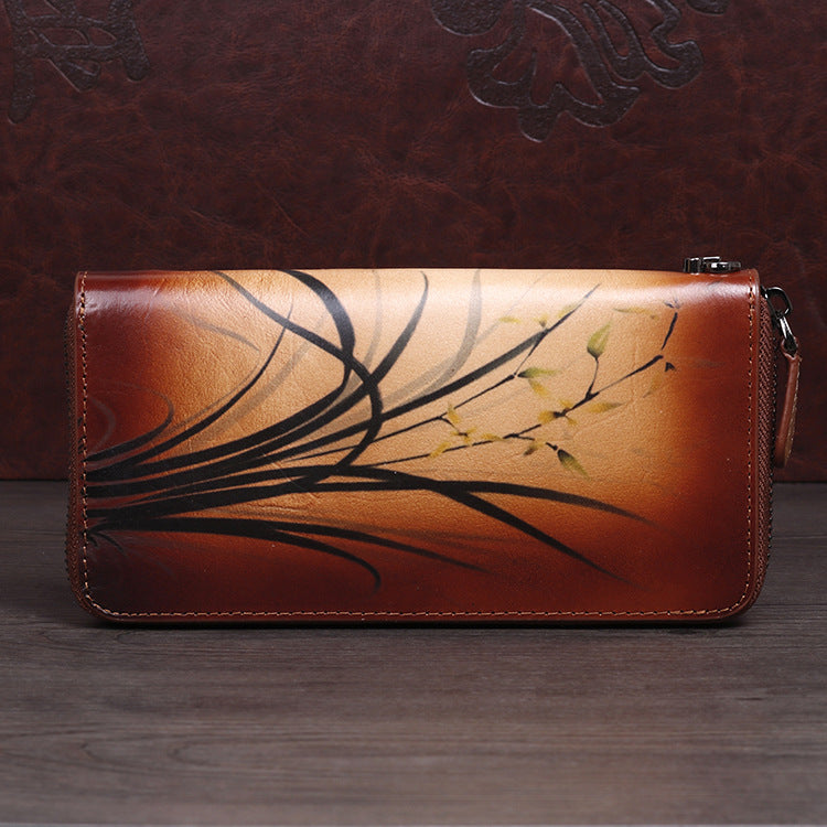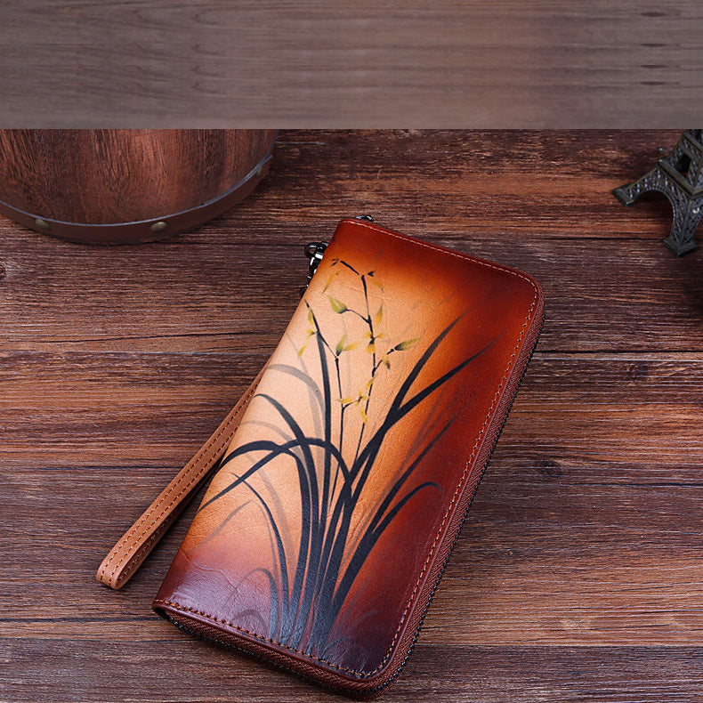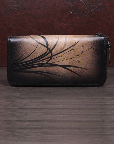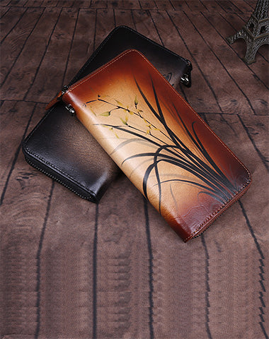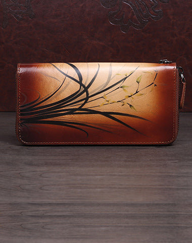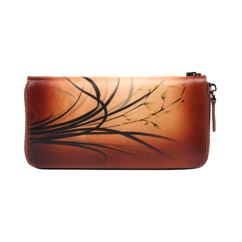 Design: Womens Leather Zip Around Wallet Wash Painting Flowers Wristlet Wallet Ladies Zipper Clutch Wallet for Women