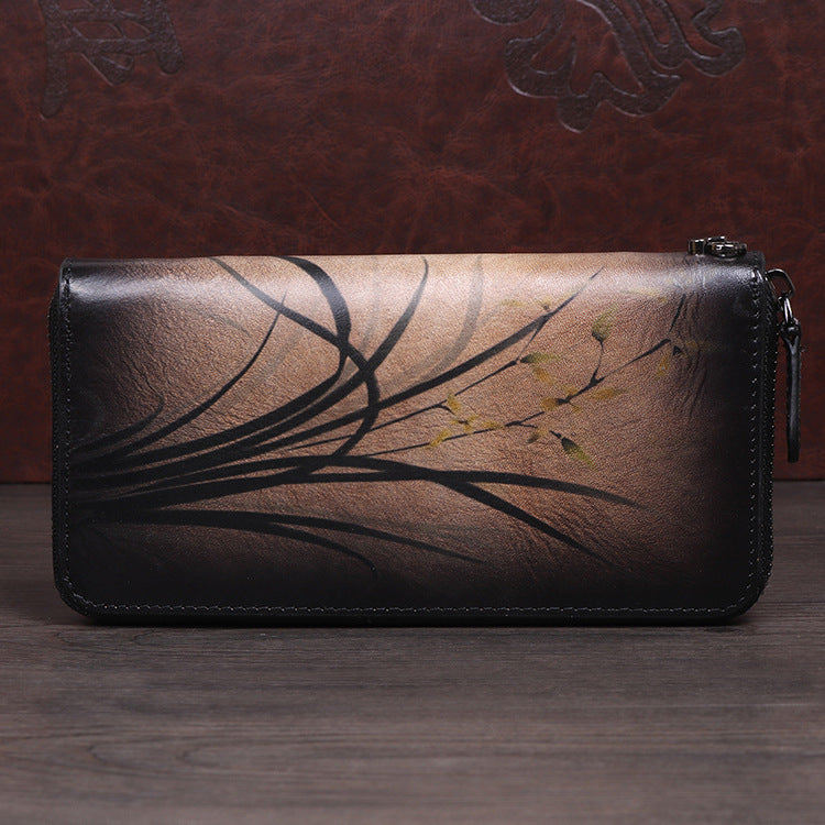 Style: Womens Leather Zip Around Wallet Wash Painting Flowers Wristlet Wallet Ladies Zipper Clutch Wallet for Women