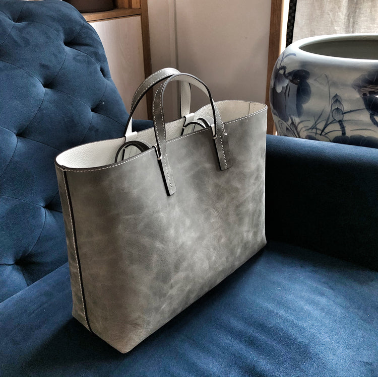 Womens Light Gray Leather Shoulder Tote Bags Best Tote Handbag Shopper Bags Purse for Ladies
