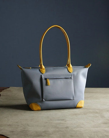 Style: Womens Light Gray Nylon Shoulder Tote Medium Light Gray&Yellow Nylon Handbag Purse for Ladies