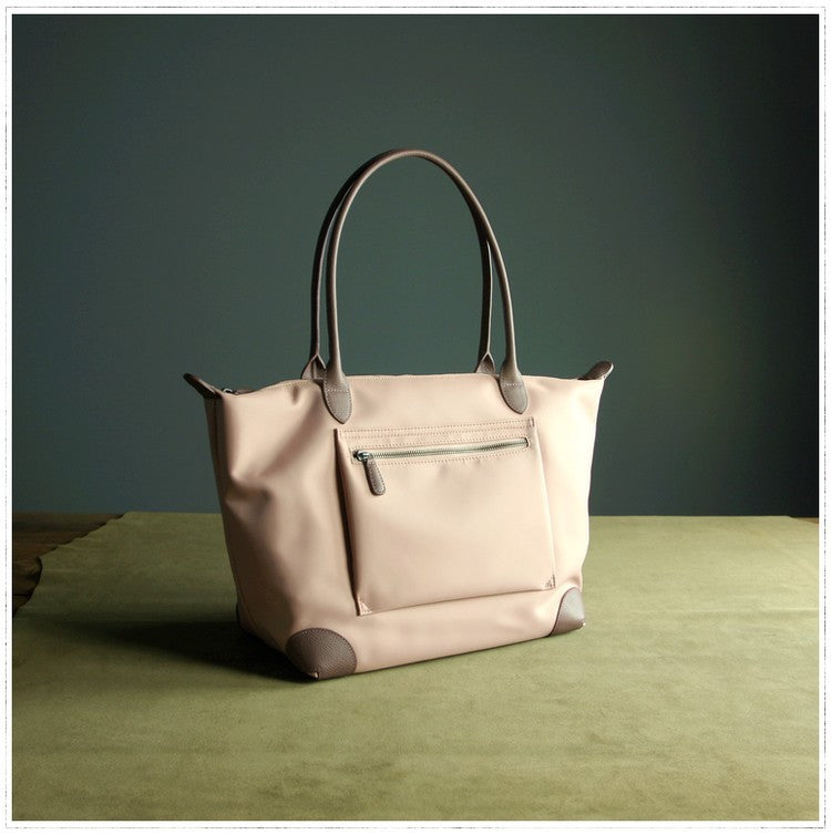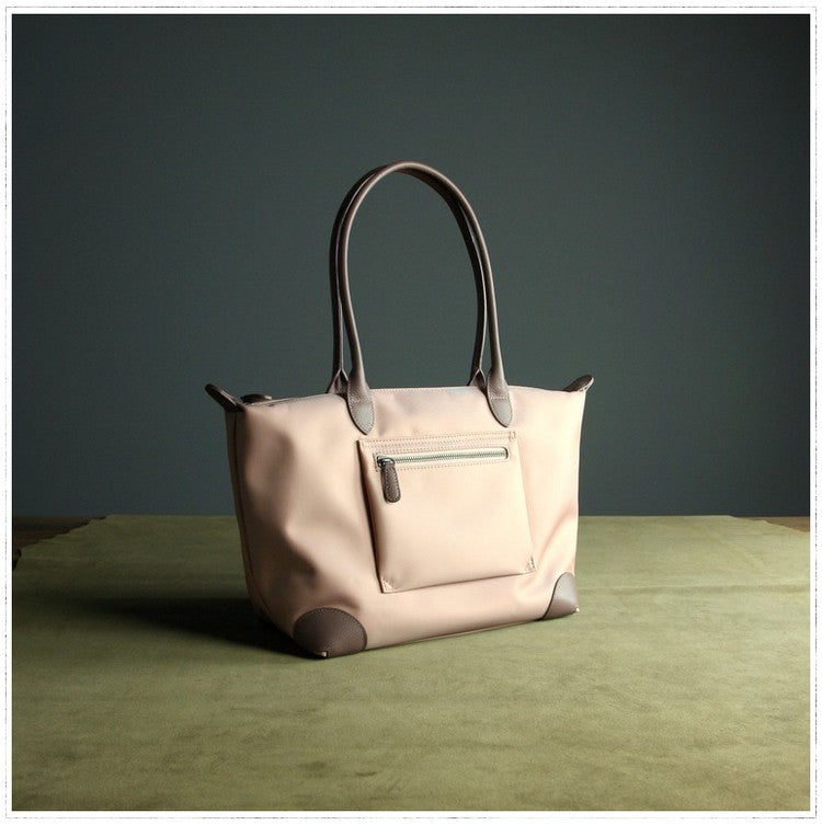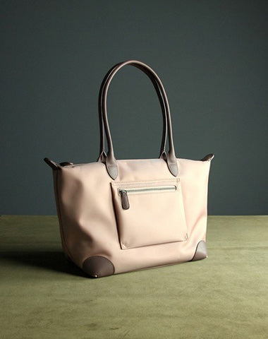 Womens Light Pink Nylon Shoulder Tote Large Pink Nylon Handbag Purse for Ladies