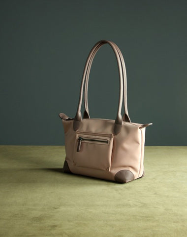 Design: Womens Light Pink Nylon Shoulder Tote Medium Pink Nylon Handbag Purse for Ladies