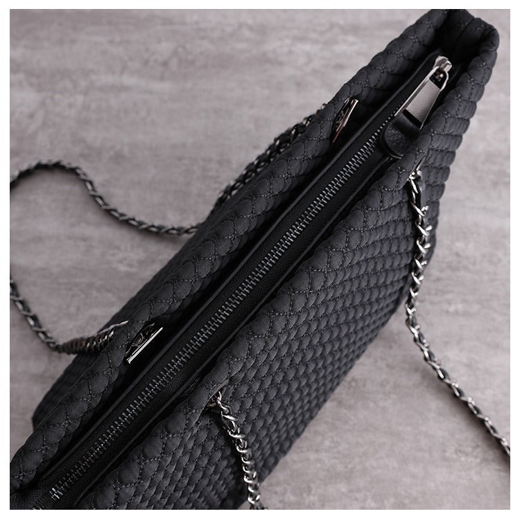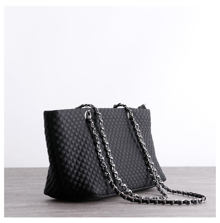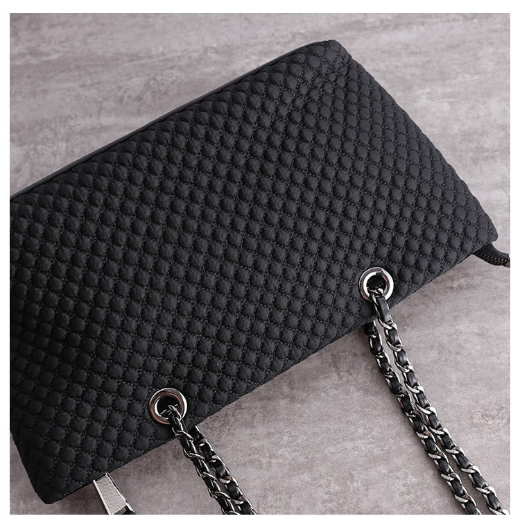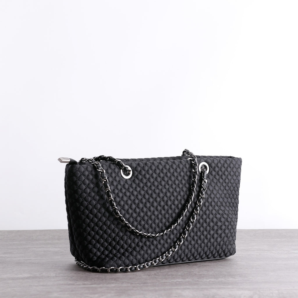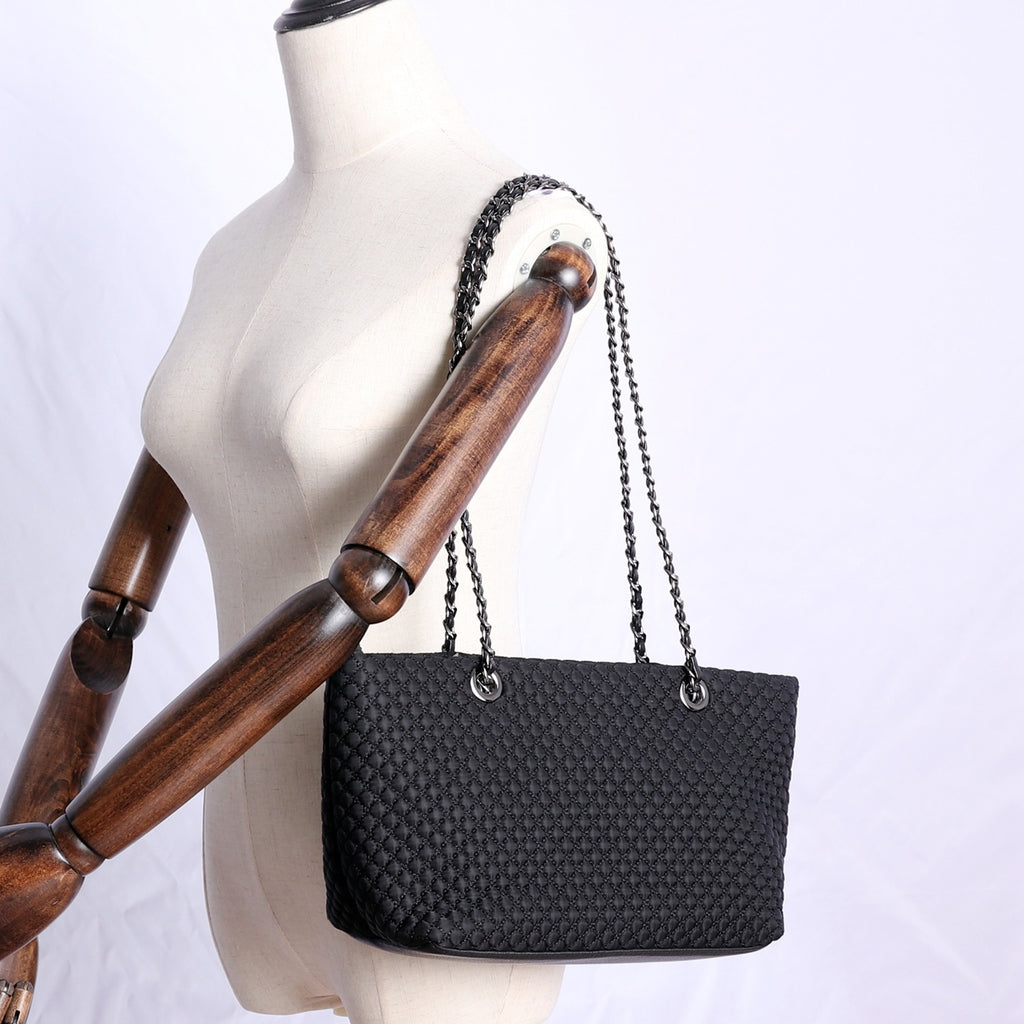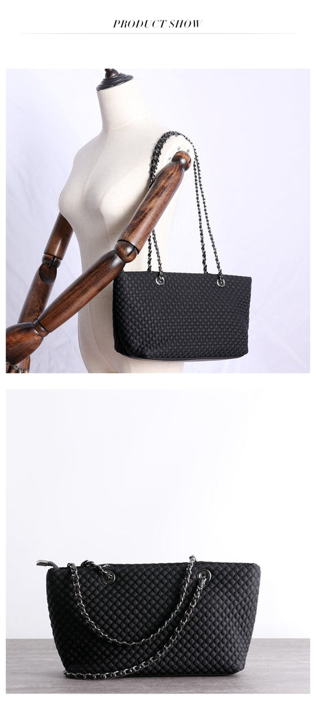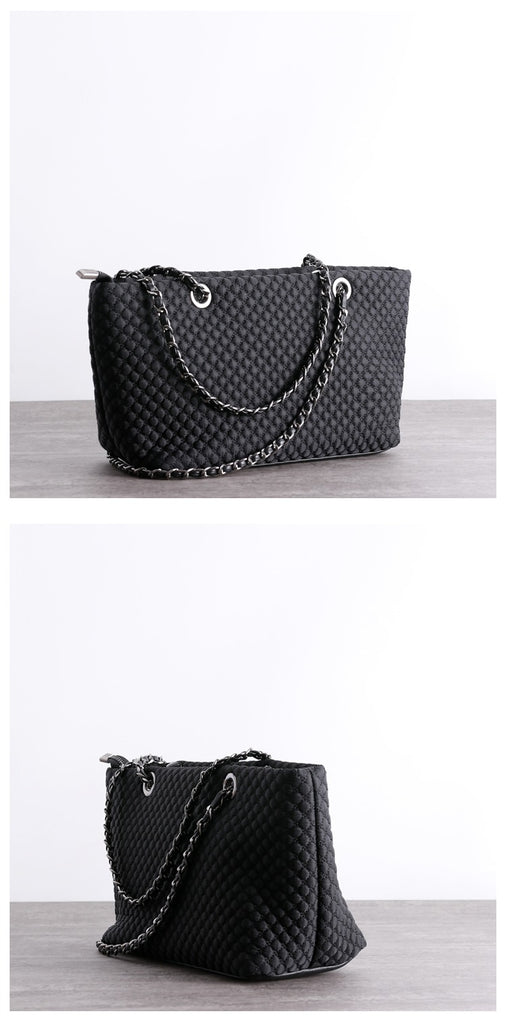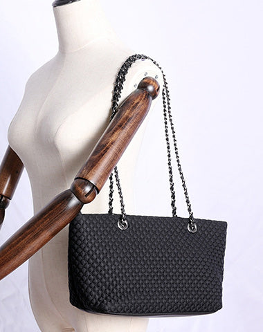 Design: Womens Nylon Diamond Shoulder Purse Womens Black Nylon Chain Shoulder Purse Nylon Chain Purse for Ladies