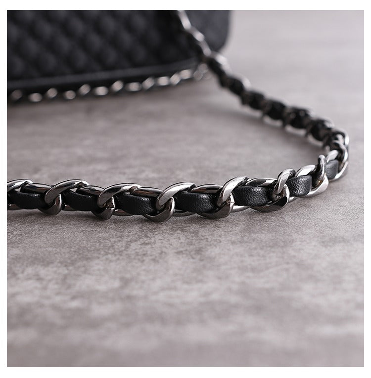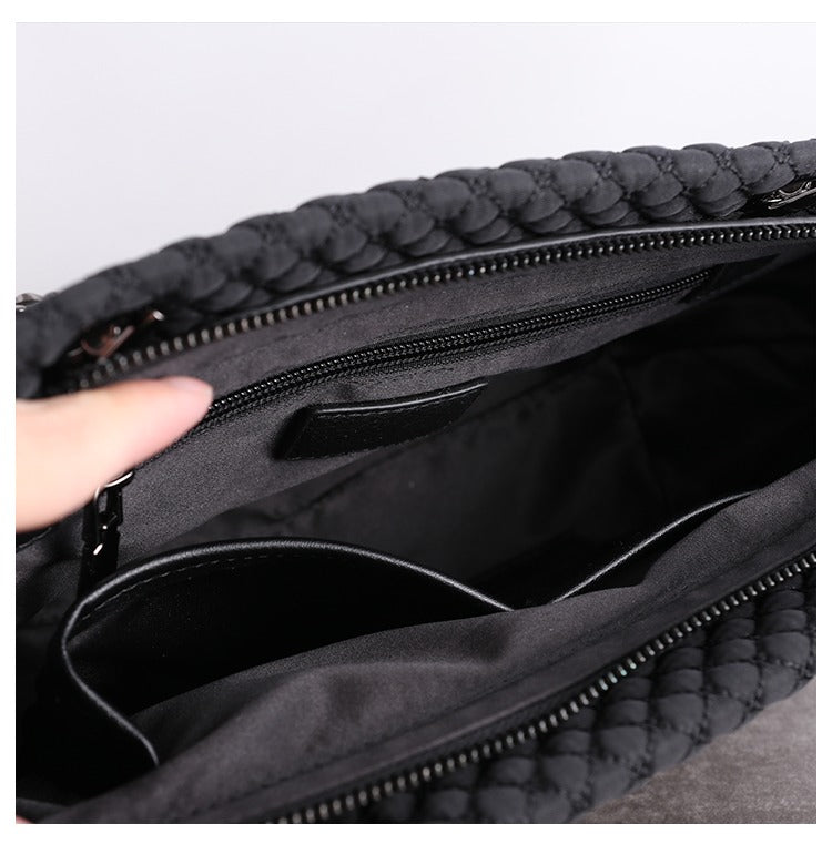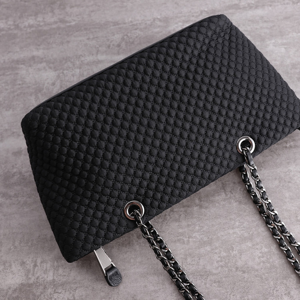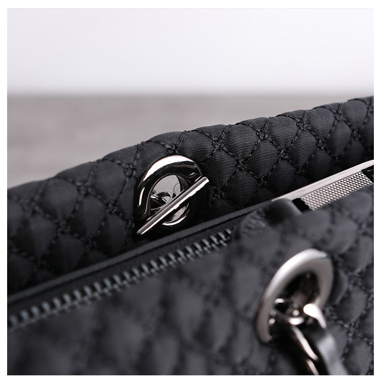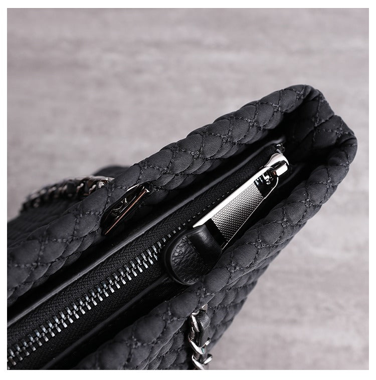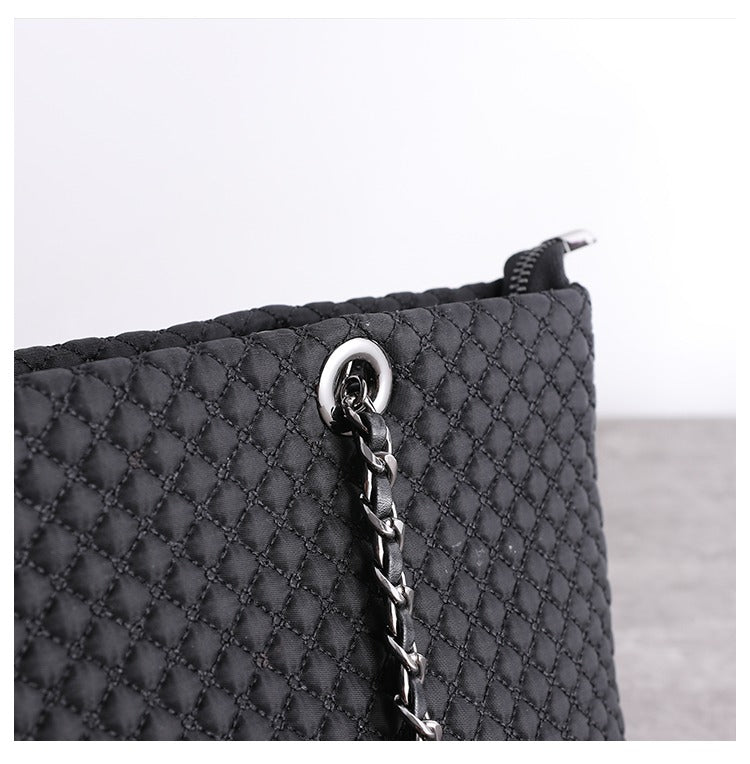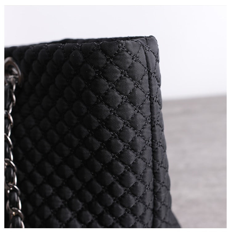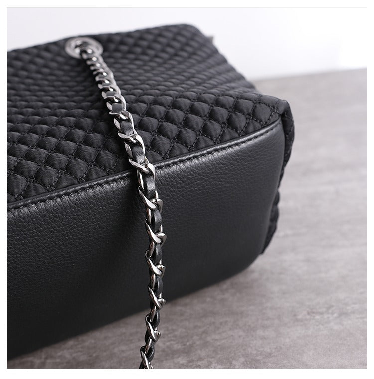 Style: Womens Nylon Diamond Shoulder Purse Womens Black Nylon Chain Shoulder Purse Nylon Chain Purse for Ladies