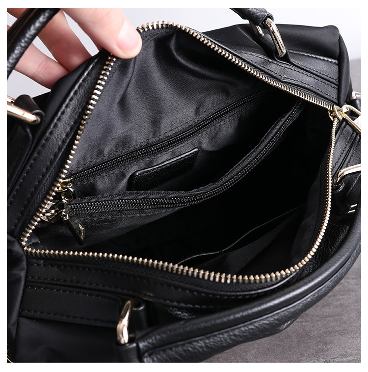 Style: Womens Nylon Leather Boston Handbags Womens Black Nylon Boston Shoulder Purse for Ladies