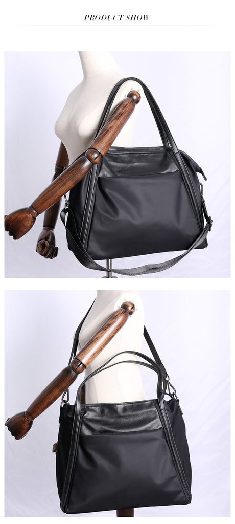 Design: Womens Nylon Leather Gym Tote Purse Womens Black Nylon Gym Purse Nylon Work Shoulder Purse for Ladies