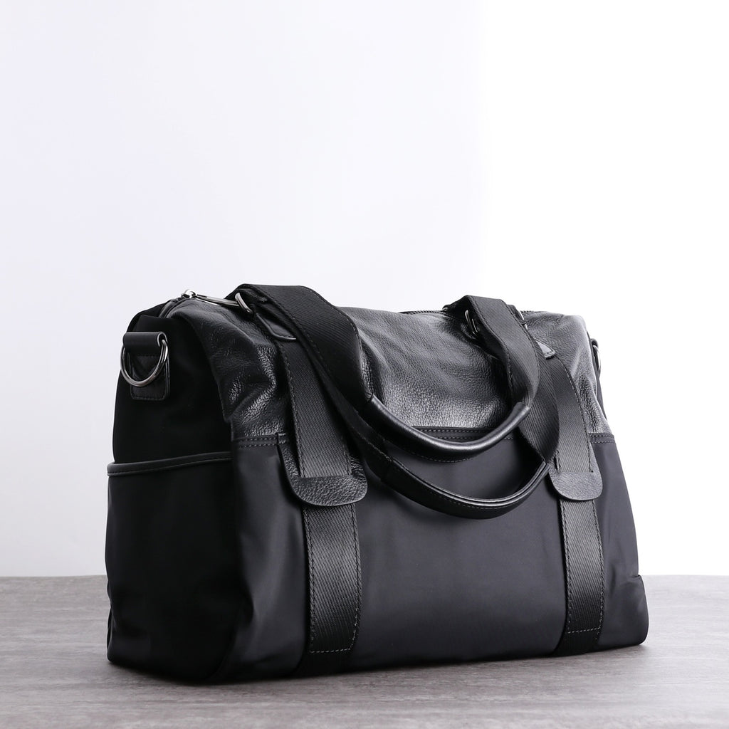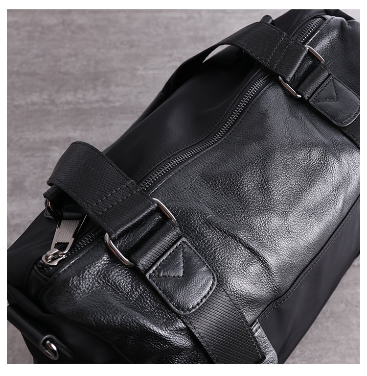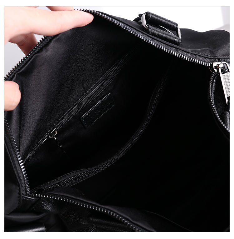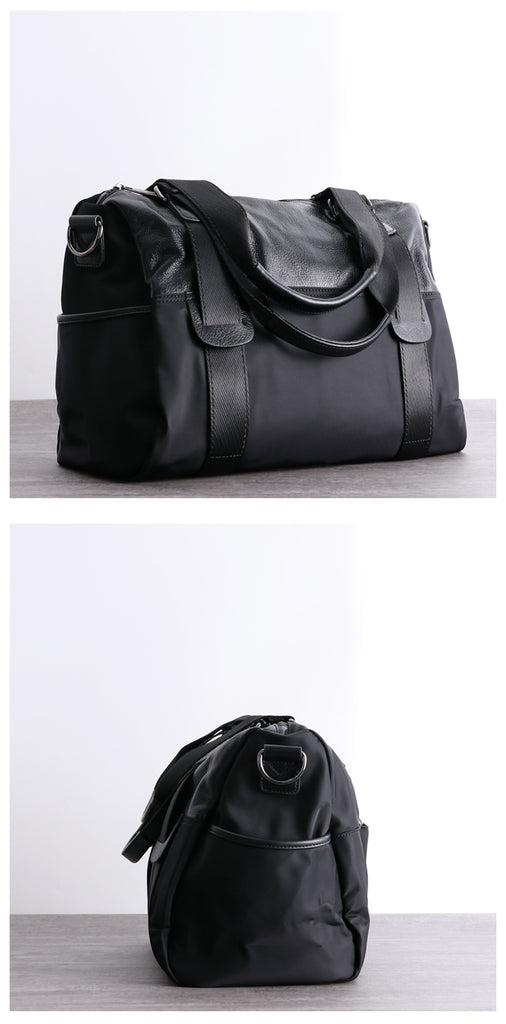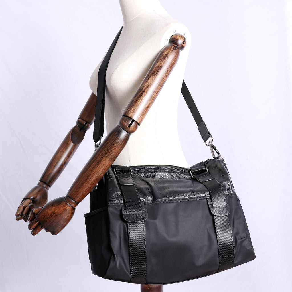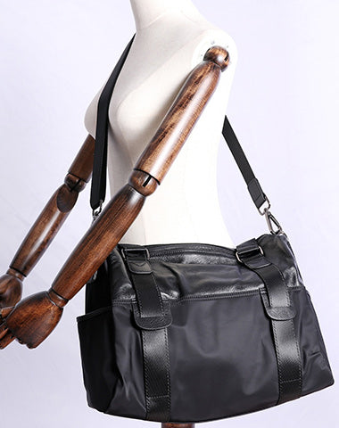 Design: Womens Nylon Leather Shoulder Travel Bag Womens Black Nylon Gym Purse Nylon Duffle Handbag Purse for Ladies