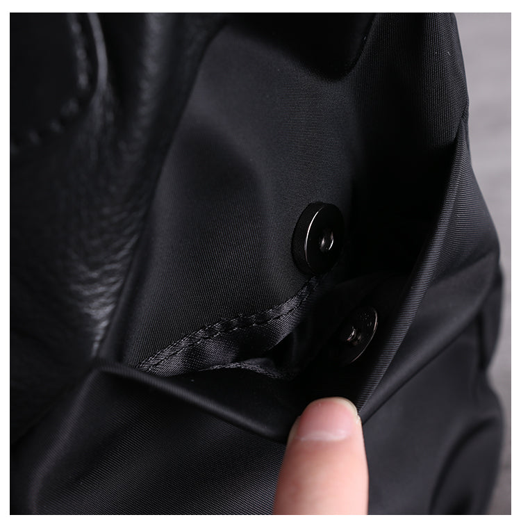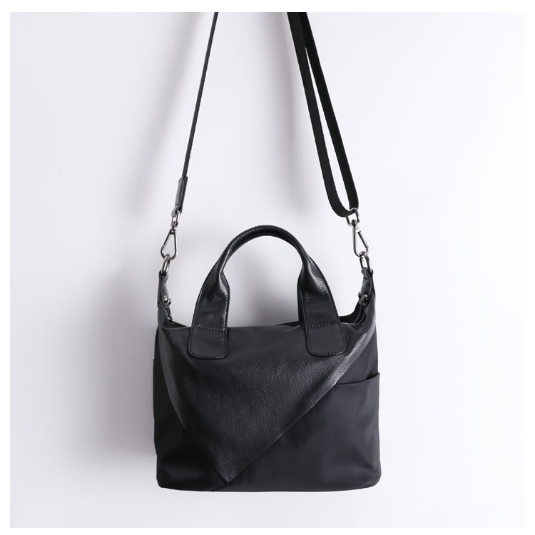 Womens Nylon Leather Small Handbags Womens Black Nylon Shoulder Purse for Ladies
