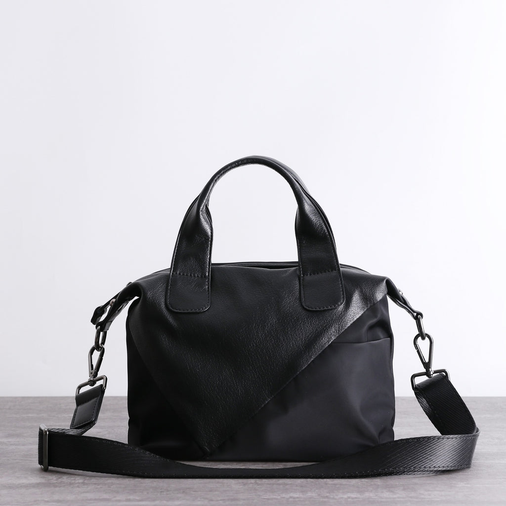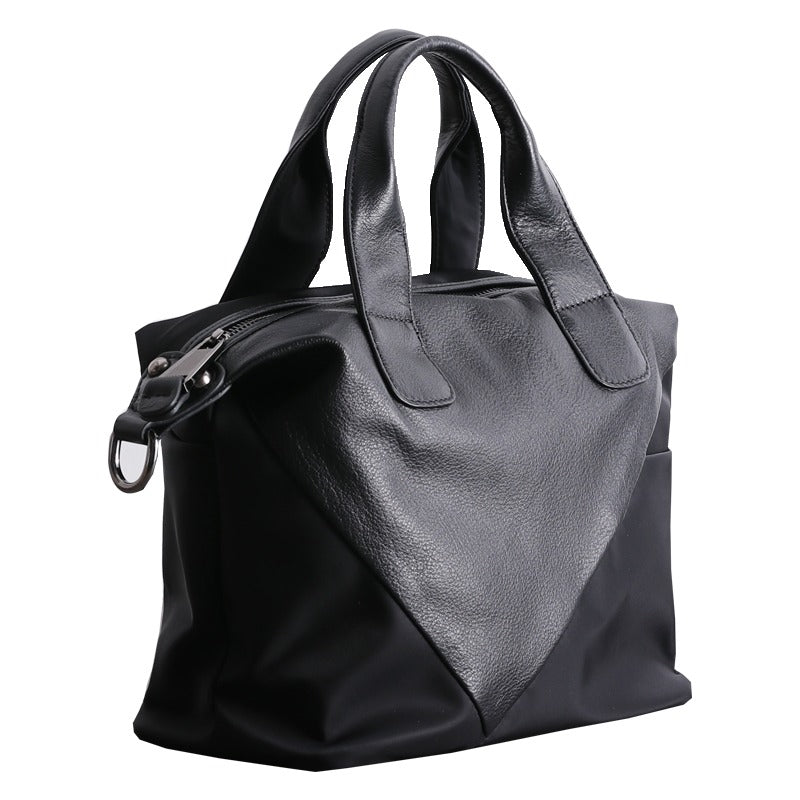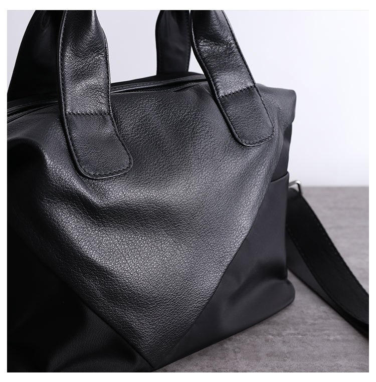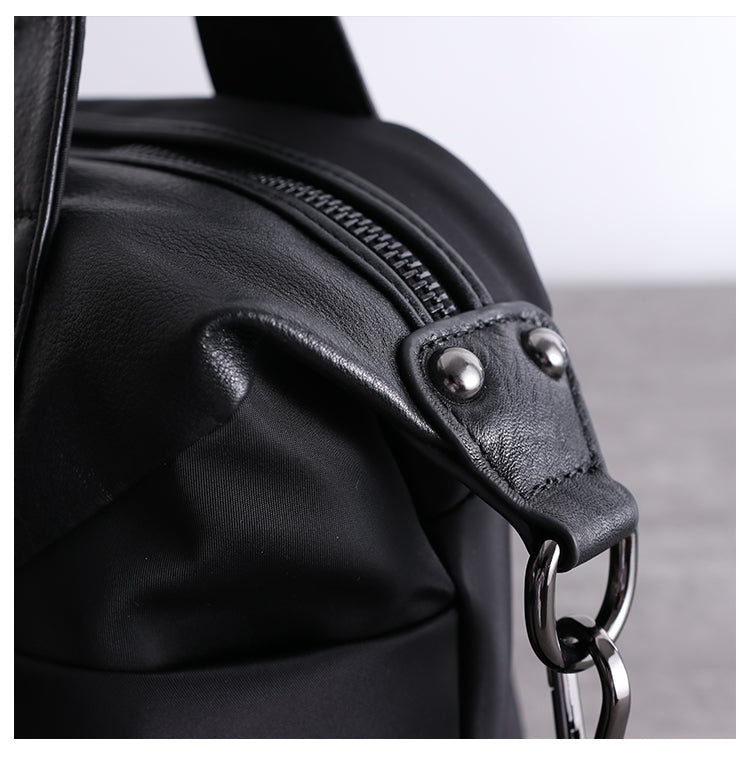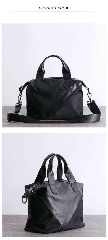Style:  Womens Nylon Leather Boston Handbags Womens Black Nylon Boston Shoulder Purse for Ladies