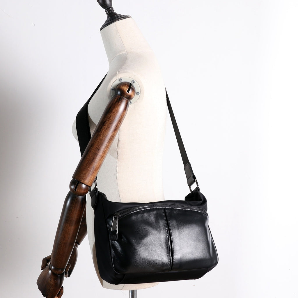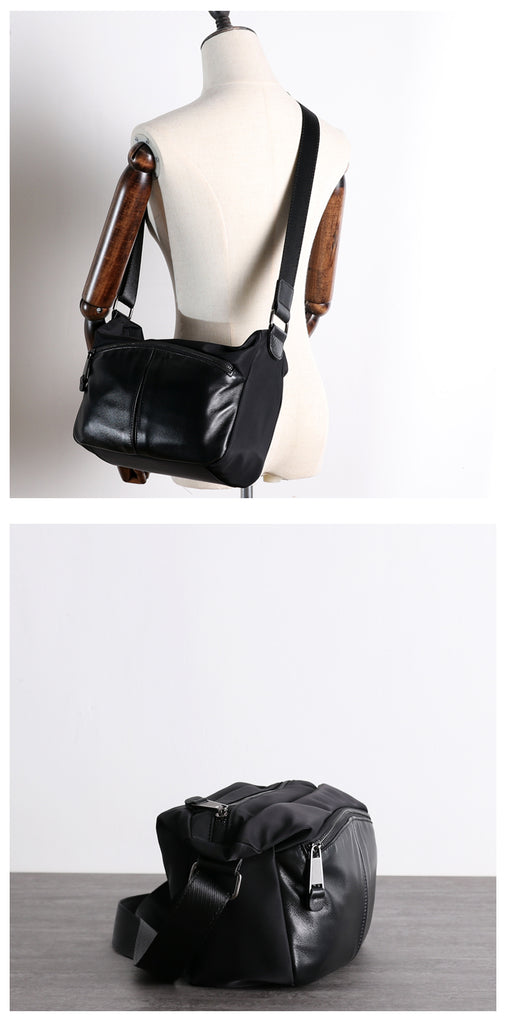 Design: Womens Nylon Leather Small Shoulder Purse Womens Black Nylon Crossbody Purse Nylon Work Shoulder Purse for Ladies