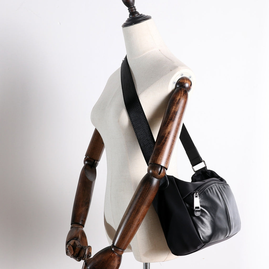 Womens Nylon Leather Small Shoulder Purse Womens Black Nylon Crossbody Purse Nylon Work Shoulder Purse for Ladies