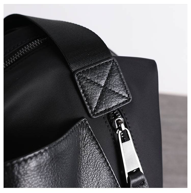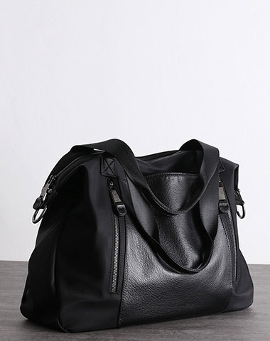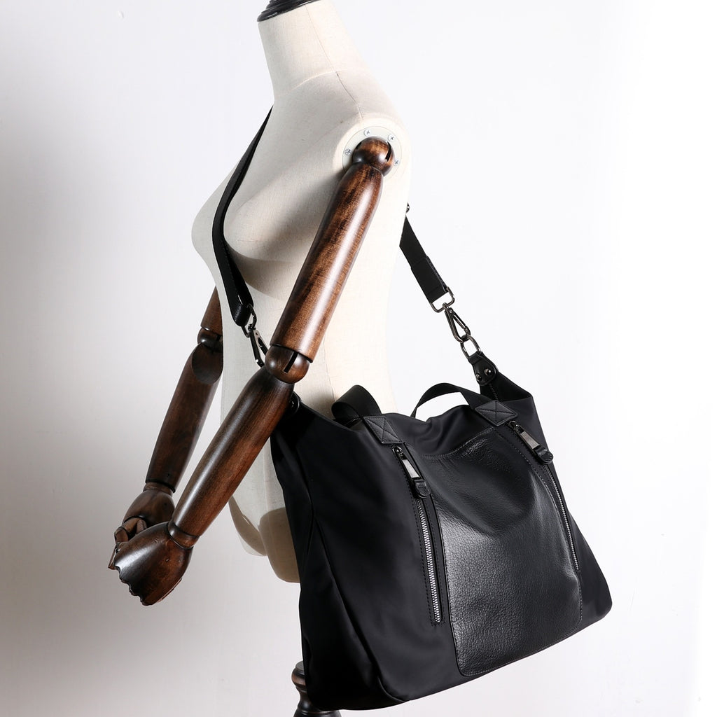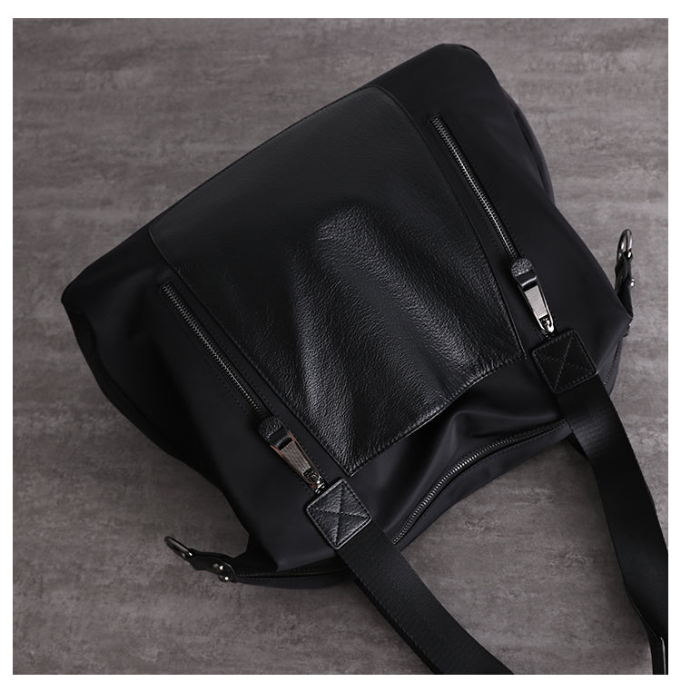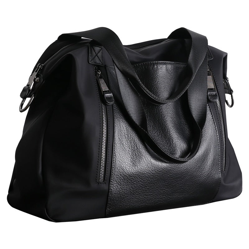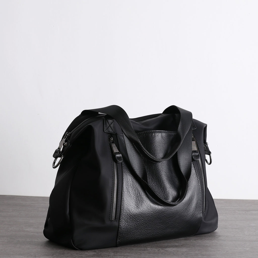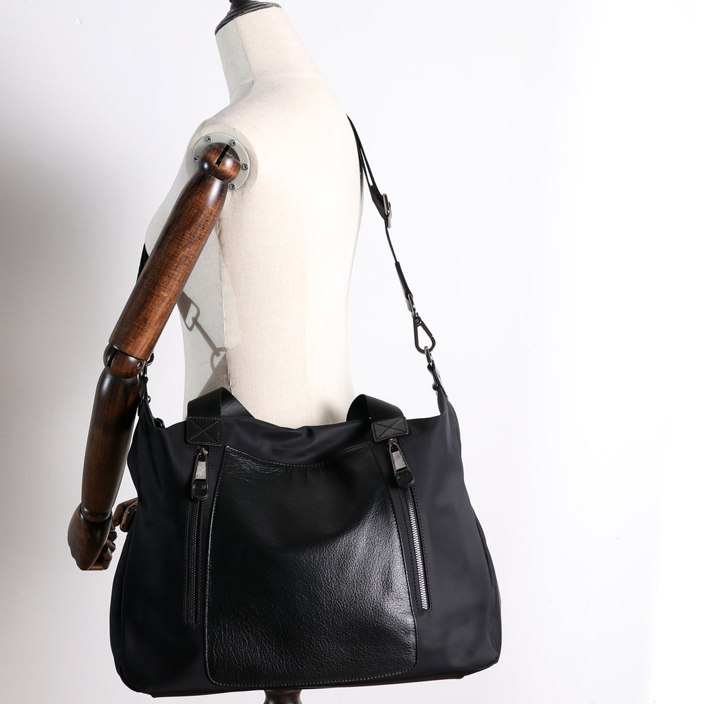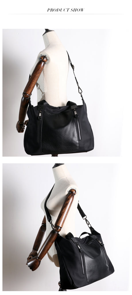 Style: Classic Womens Nylon Leather Handbags Mens Black Nylon Laptop Shoulder Purse for Ladies